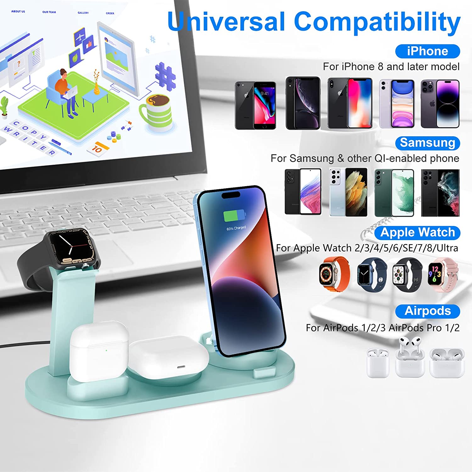 • 【What You Get】1*4 in 1 Wireless Charger, 1 Adapter and 1* User Manual. 12 months replacement and lifetime customer service guaranteed. If you have any questions, please feel free to contact us.