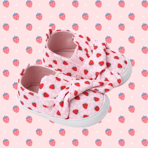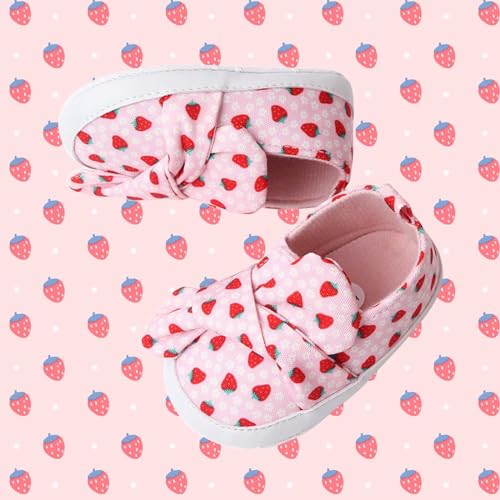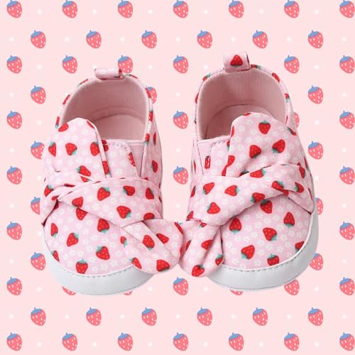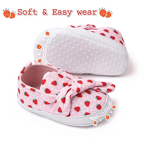 YTWM Baby Girls Shoes First Birthday Walking Shoe for 0-18 Months, Easy Wear Non Slip Lightweight Baby Indoor Outdoor Sneakers Strawberry