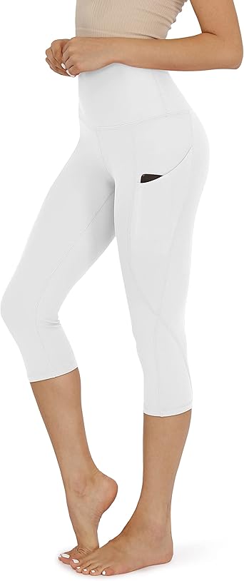 ODODOS Women's High Waisted Yoga Capris with Pockets, Tummy Control Non See Through Workout Athletic Running Capri Leggings