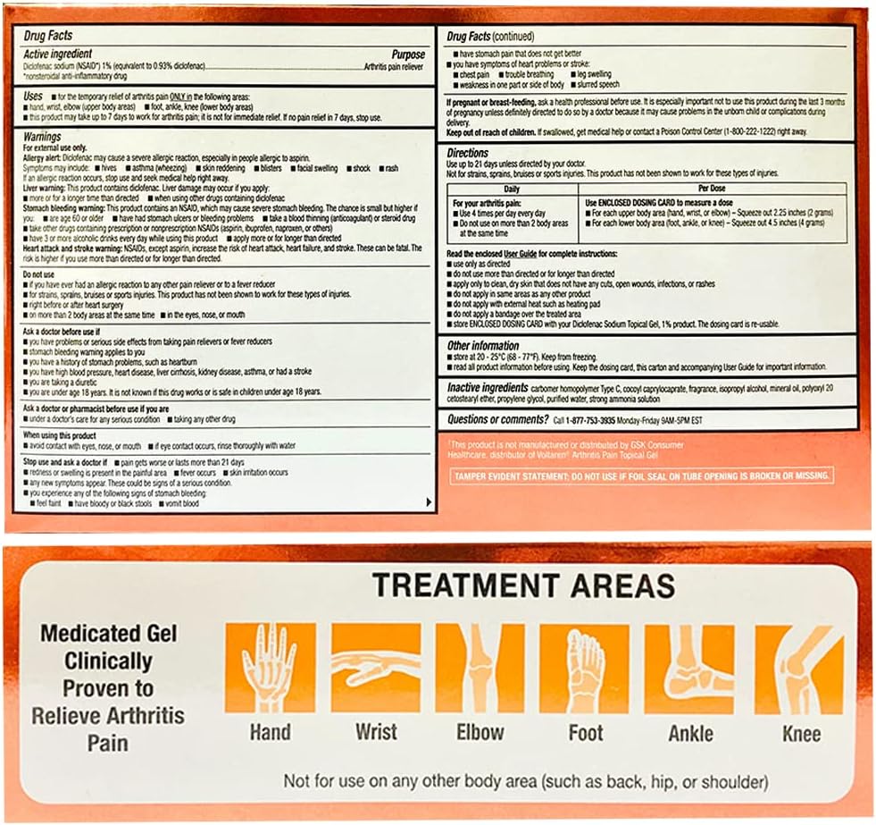 ORIGINAL PRESCRIPTION STRENGTH DICLOFENAC SODIUM TOPICAL GEL, 1% (NSAID) For Daily Treatment of Arthritis Pain Anti-Inflammatory Arthritis Pain Reliever For external use only