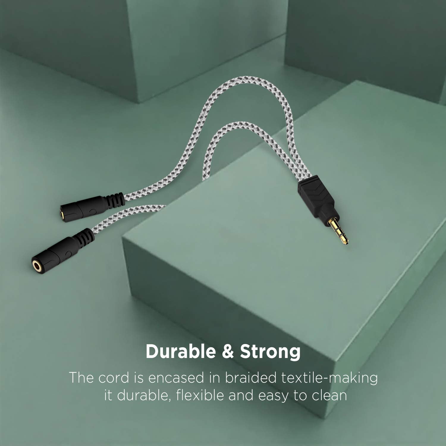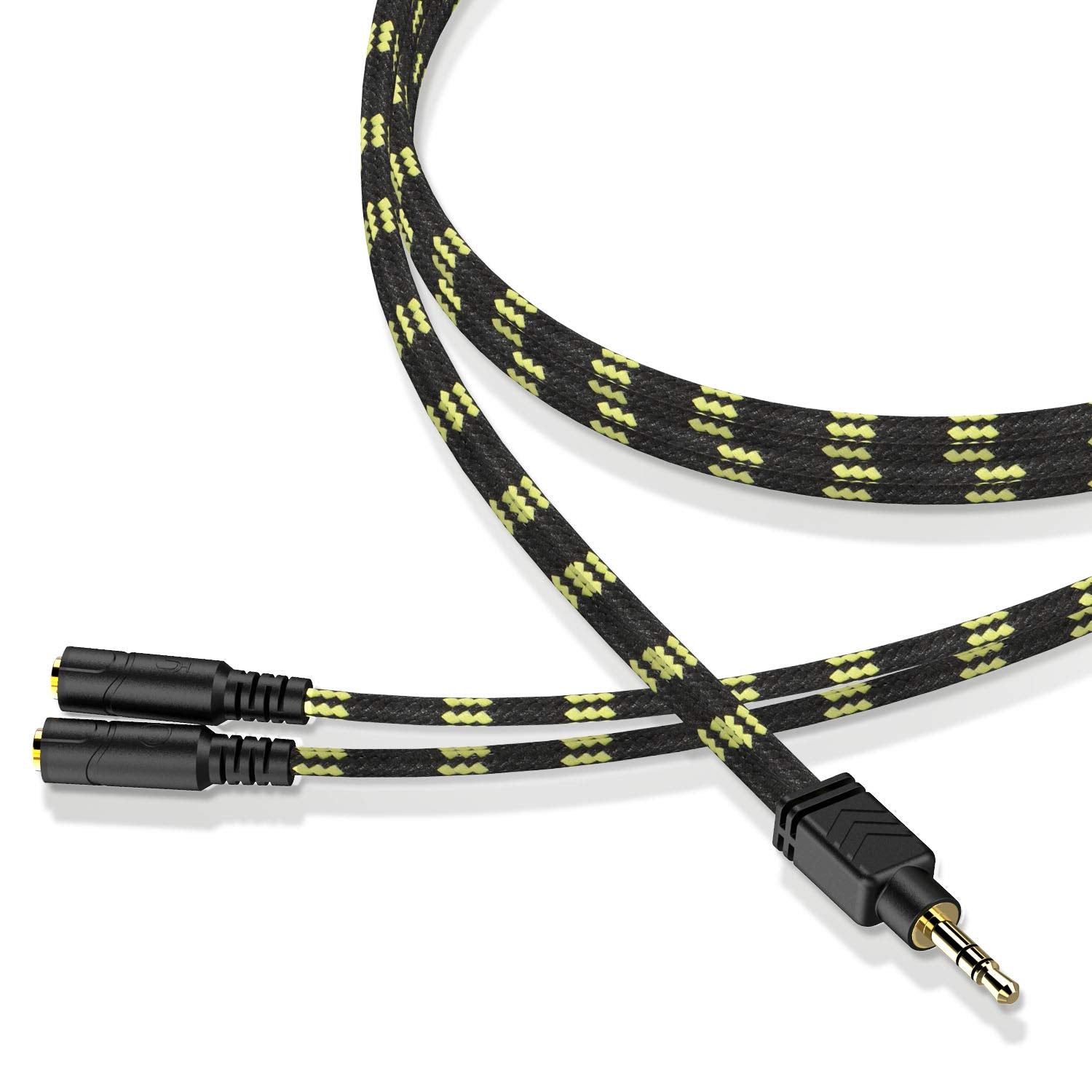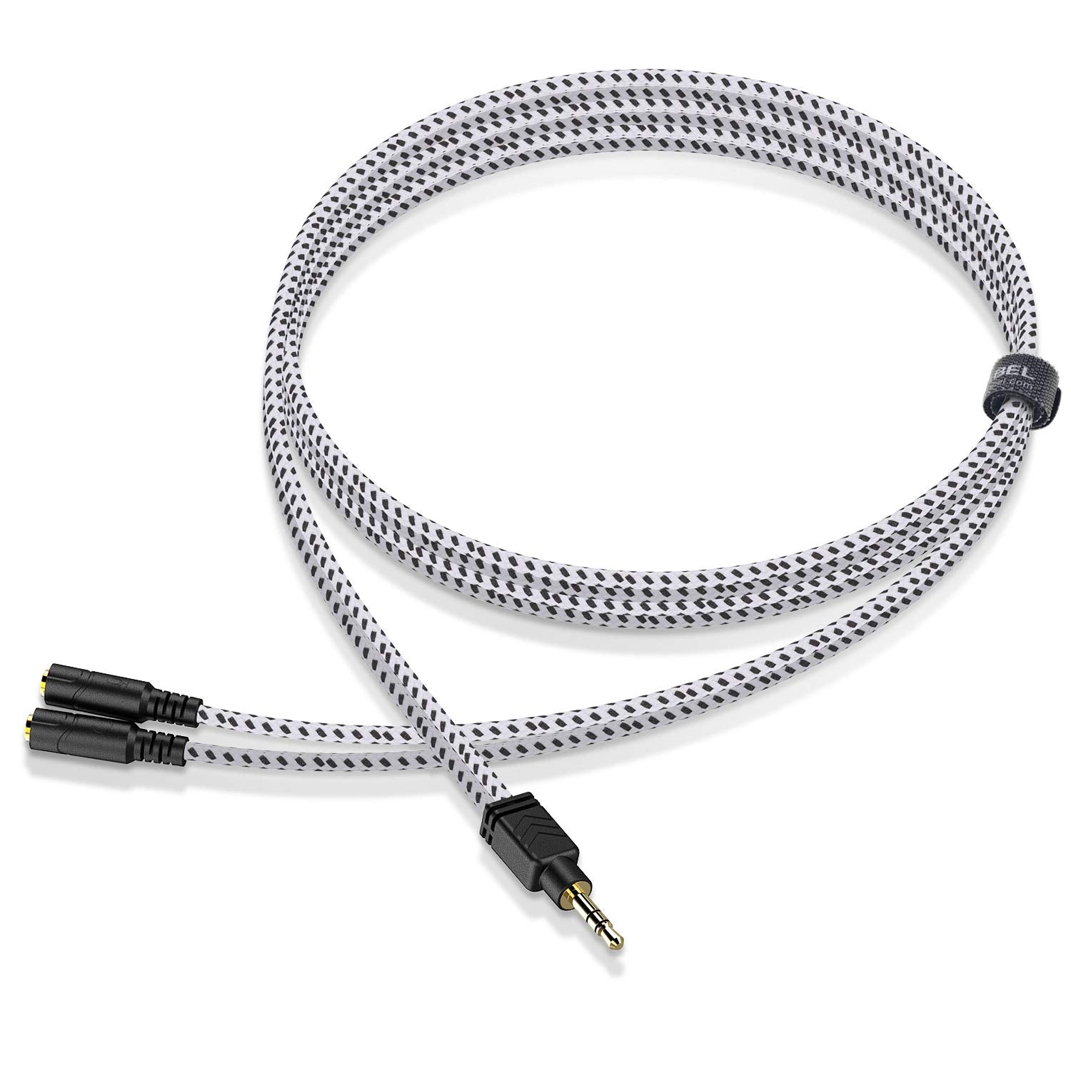 DUKABEL Headphone Splitter, Knitted 3.5mm Audio Splitter TRS 3-Pole Aux Splitter Cable for Headphones Earphones Speakers -Zebra White