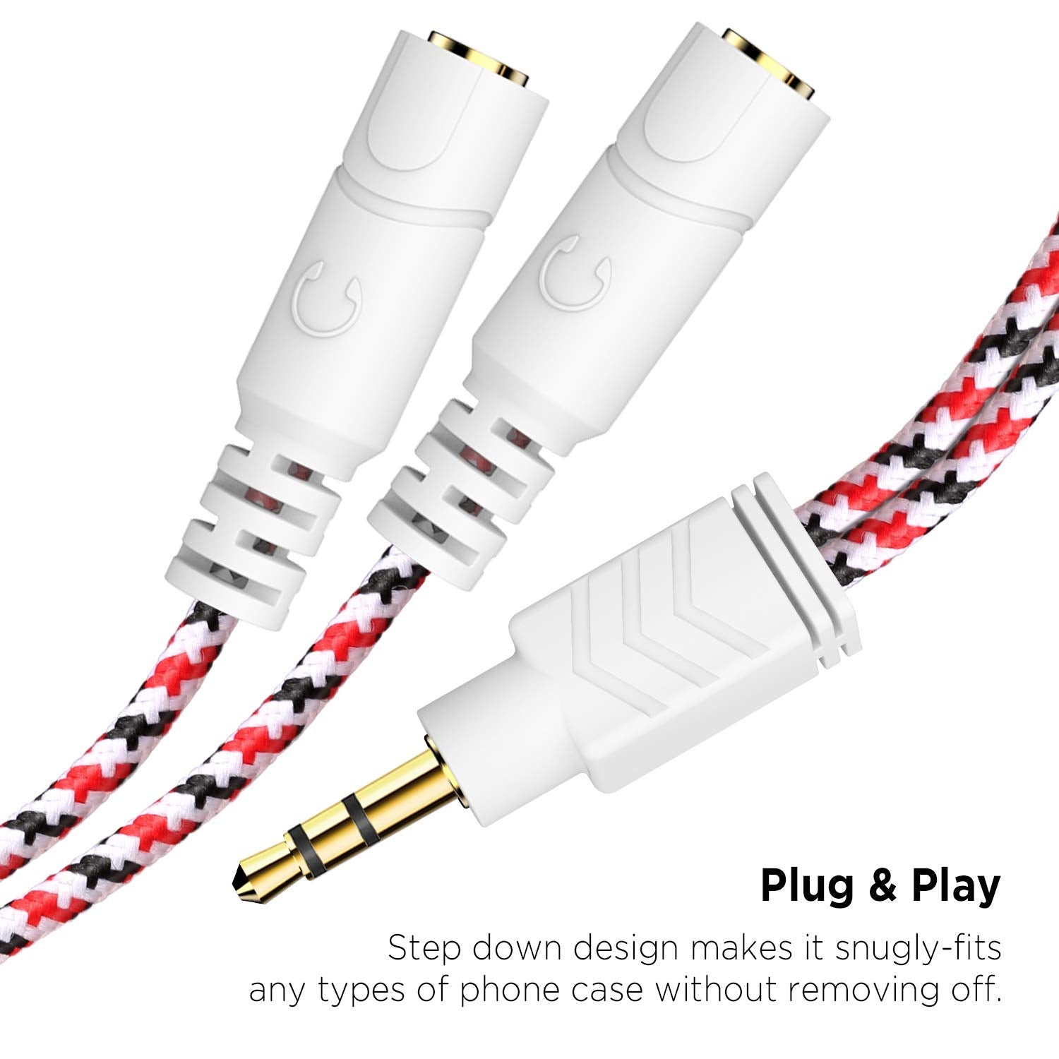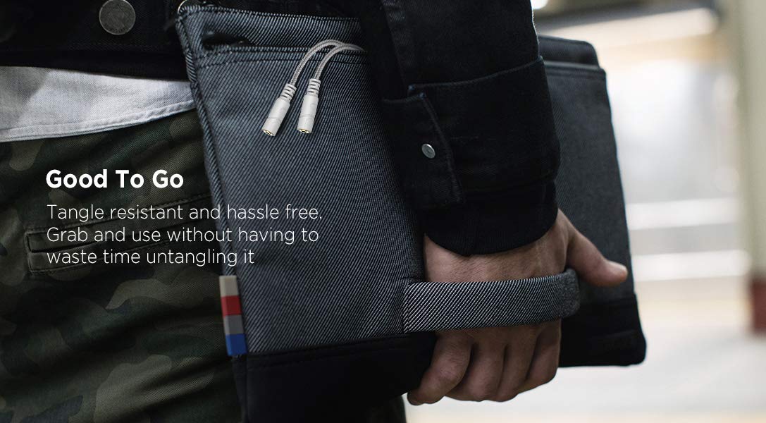 • Slim Design: 2 way headphones splitter fits inside most tablet and cell phone cases. Find Braided Cable surface provides extra protection to your cable, and add more stylish-look to your must-have gadgets.