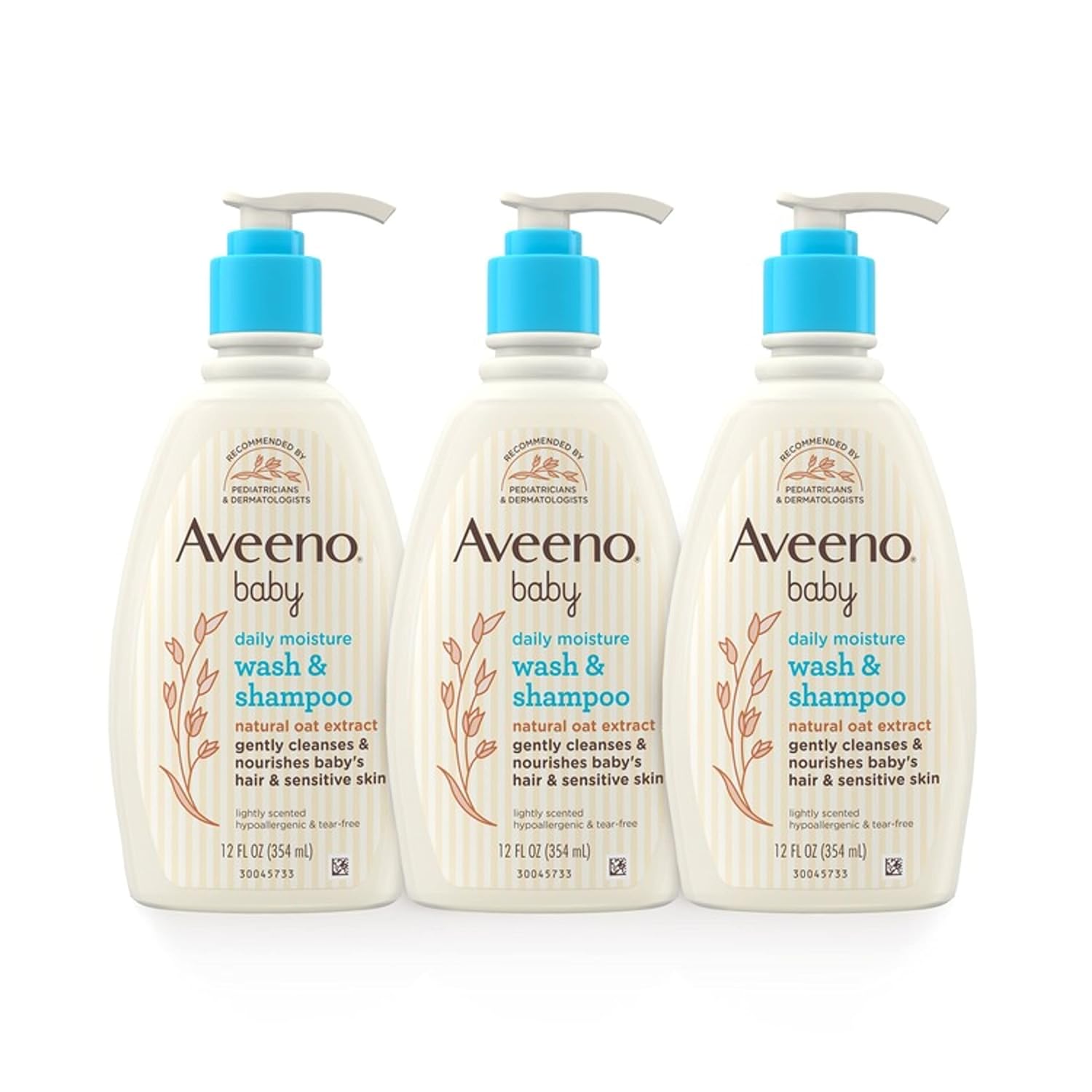 Aveeno Baby Moisture Body Wash & Shampoo, Oat Extract, 3 x 12 Fl. Oz