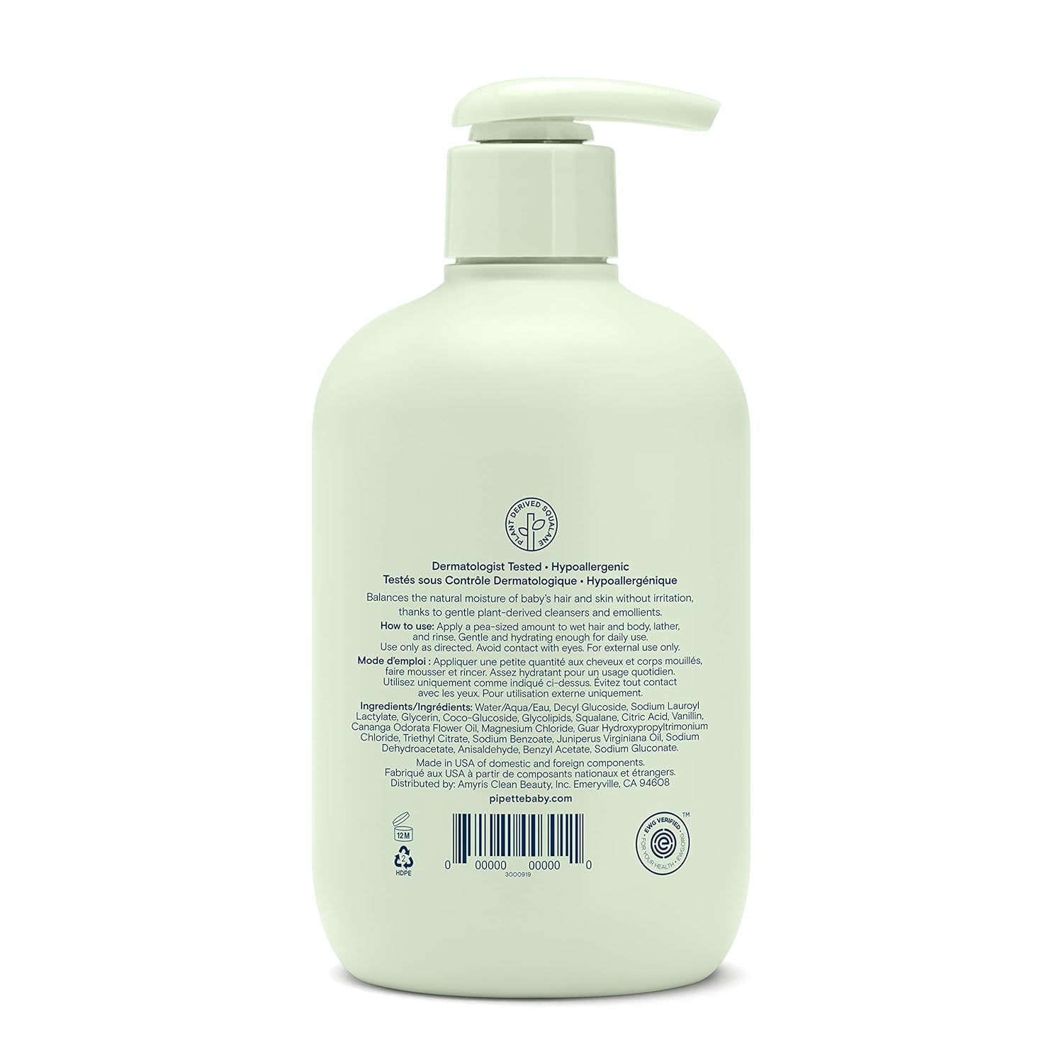 • All Pipette skin care products are created with the support of biologists, pediatricians and dermatologists, and are rigorously tested to ensure they're 100% clean, hypoallergenic, free of synthetic fragrances, vegan & cruelty-free. EWG Verified.