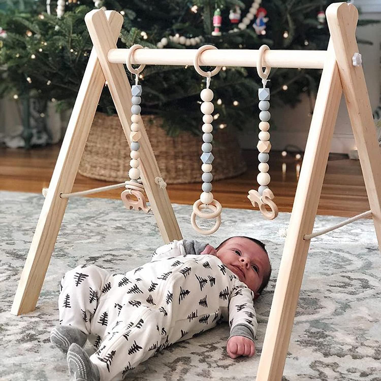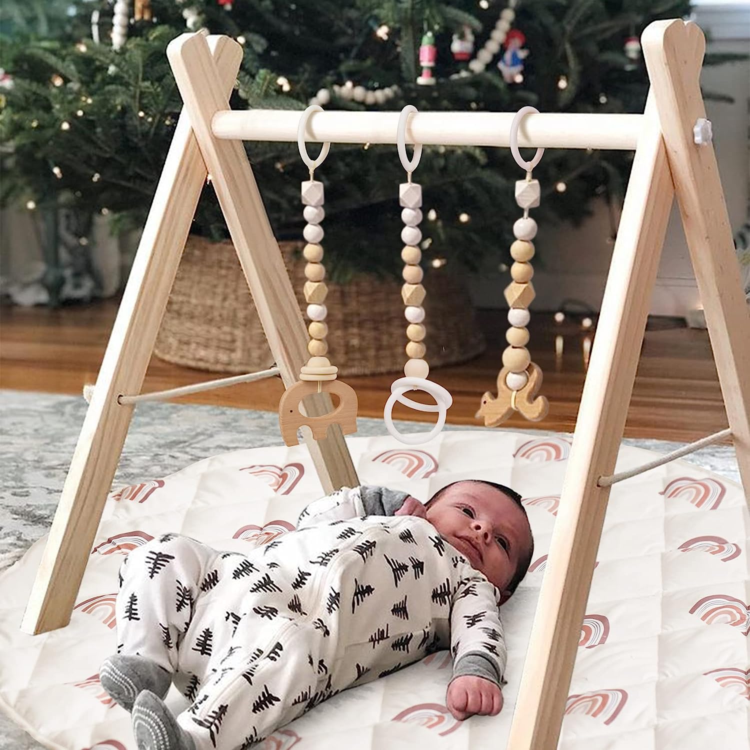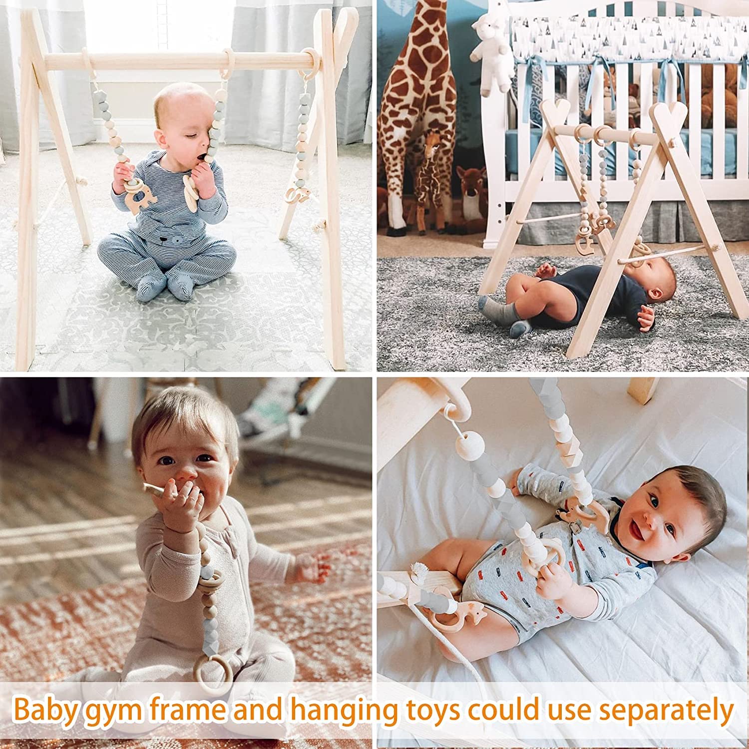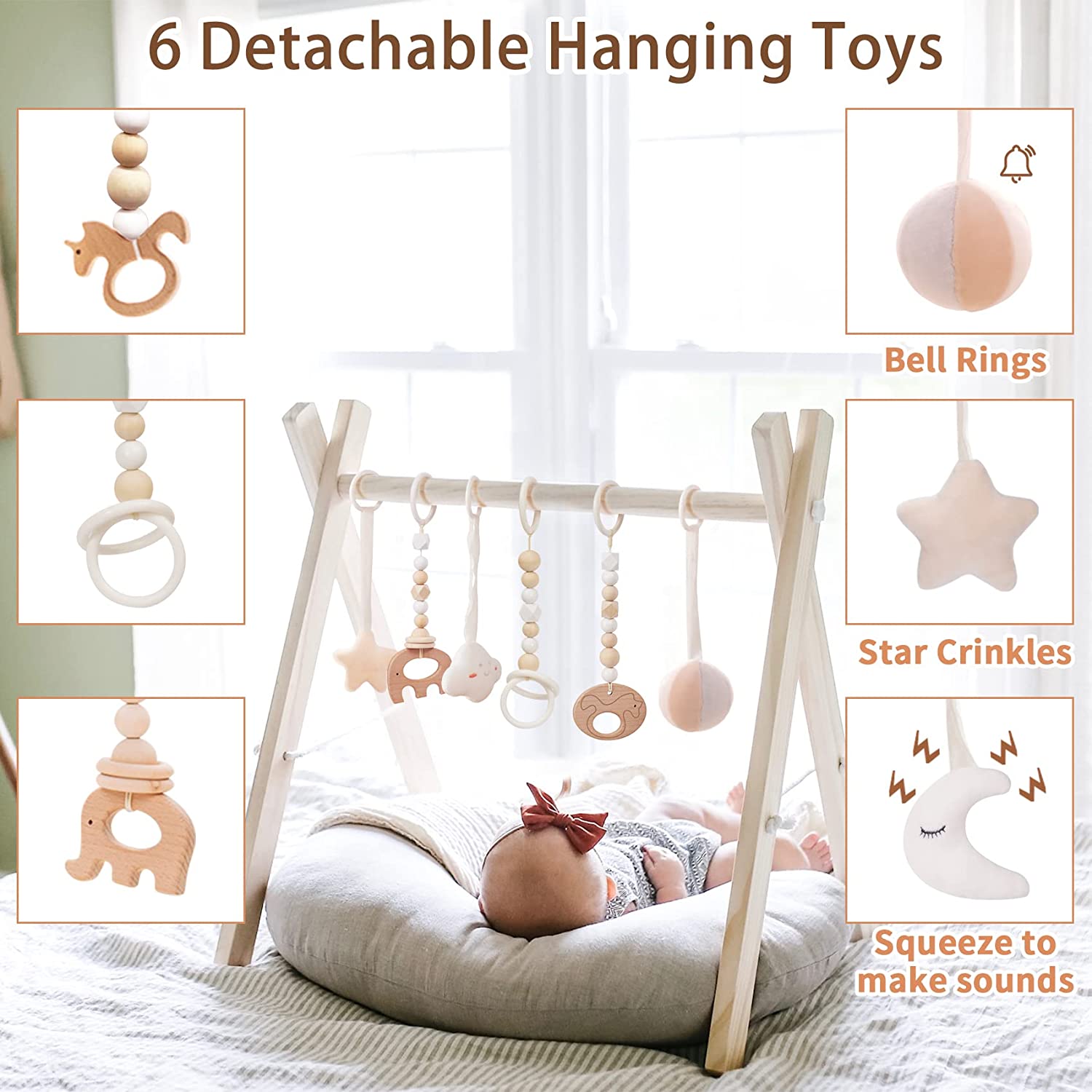 funny supply Wooden Baby Gym with 6 Gym Toys Foldable Baby Play Gym Frame Activity Center Hanging Bar Newborn Gift