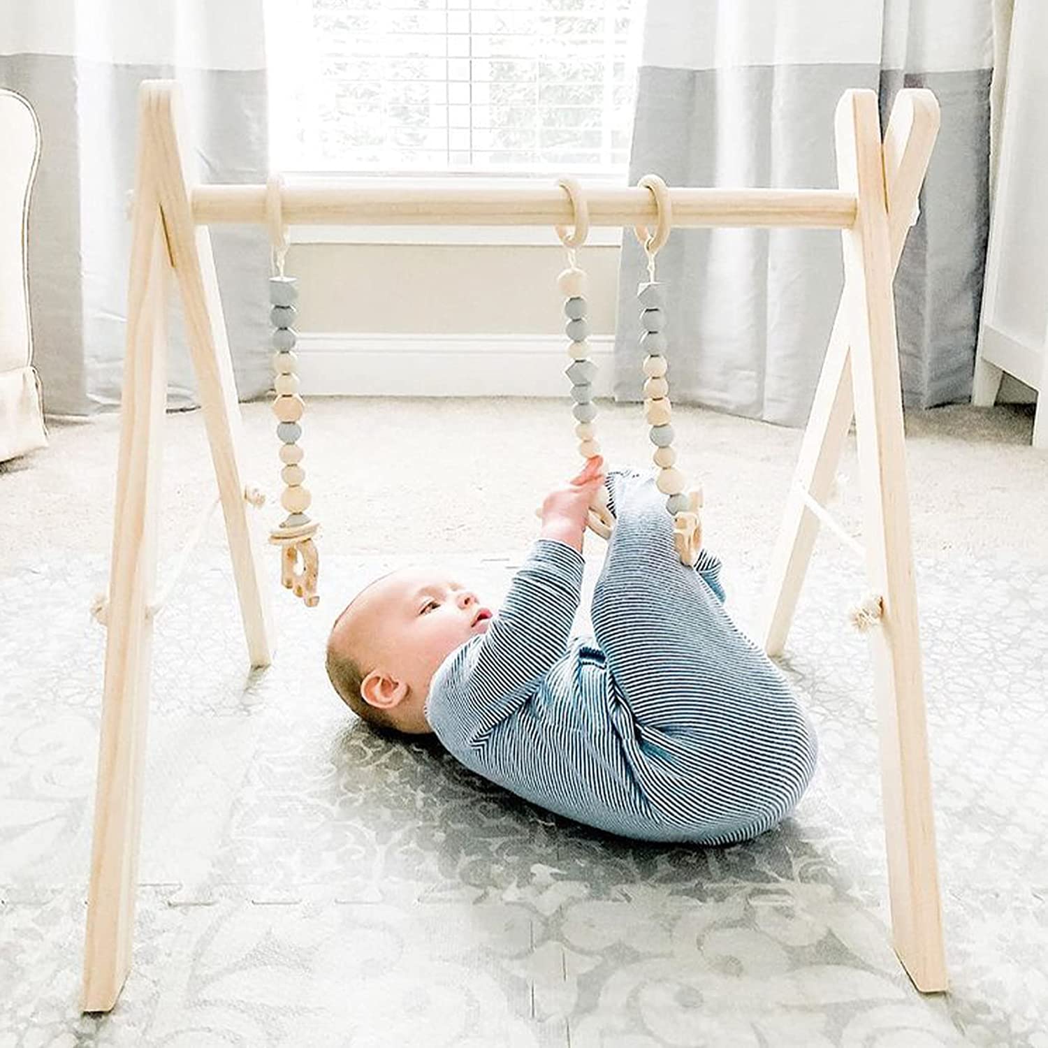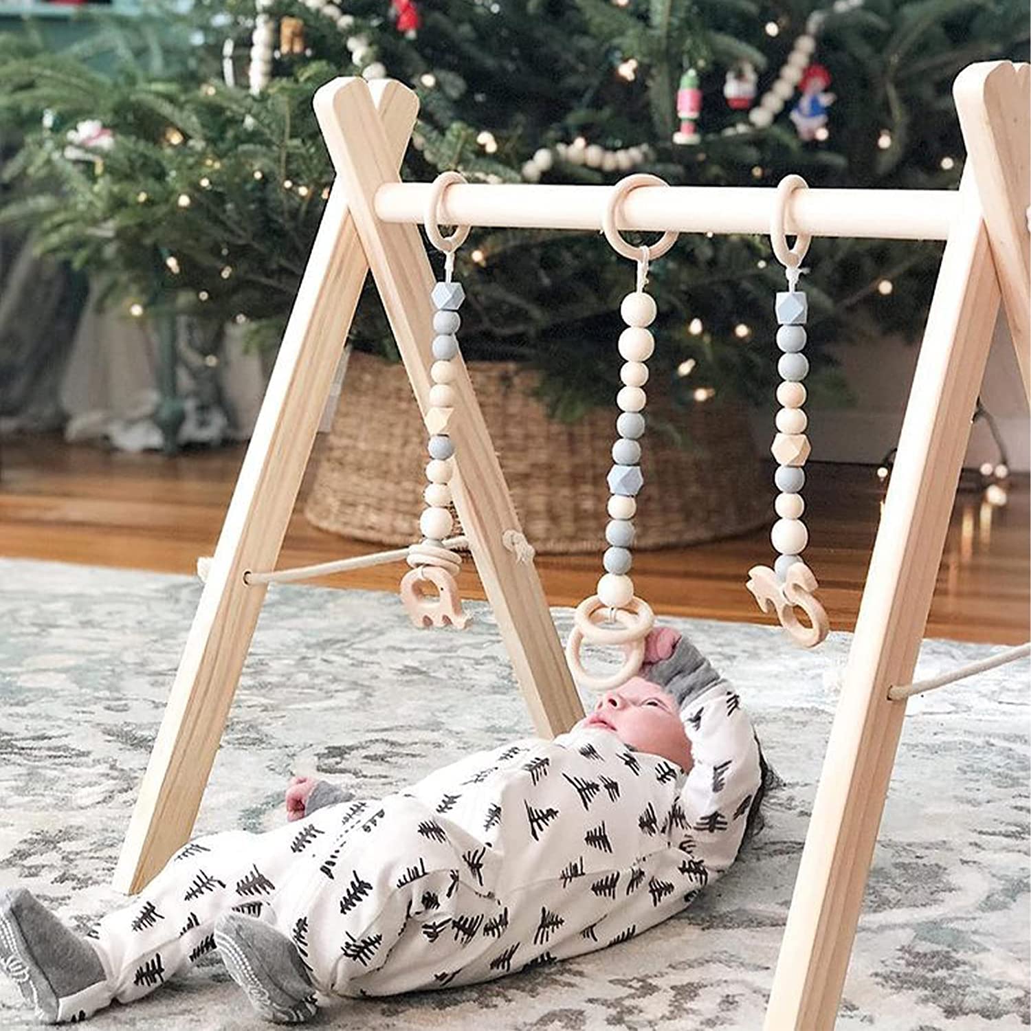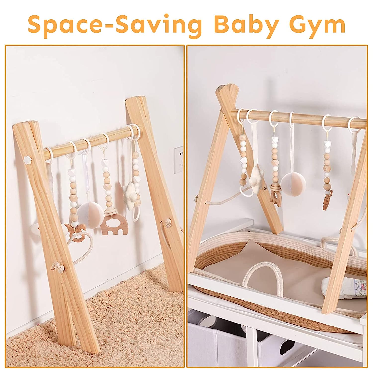 funny supply Wooden Baby Gym with 6 Gym Toys Foldable Baby Play Gym Frame Activity Center Hanging Bar Newborn Gift