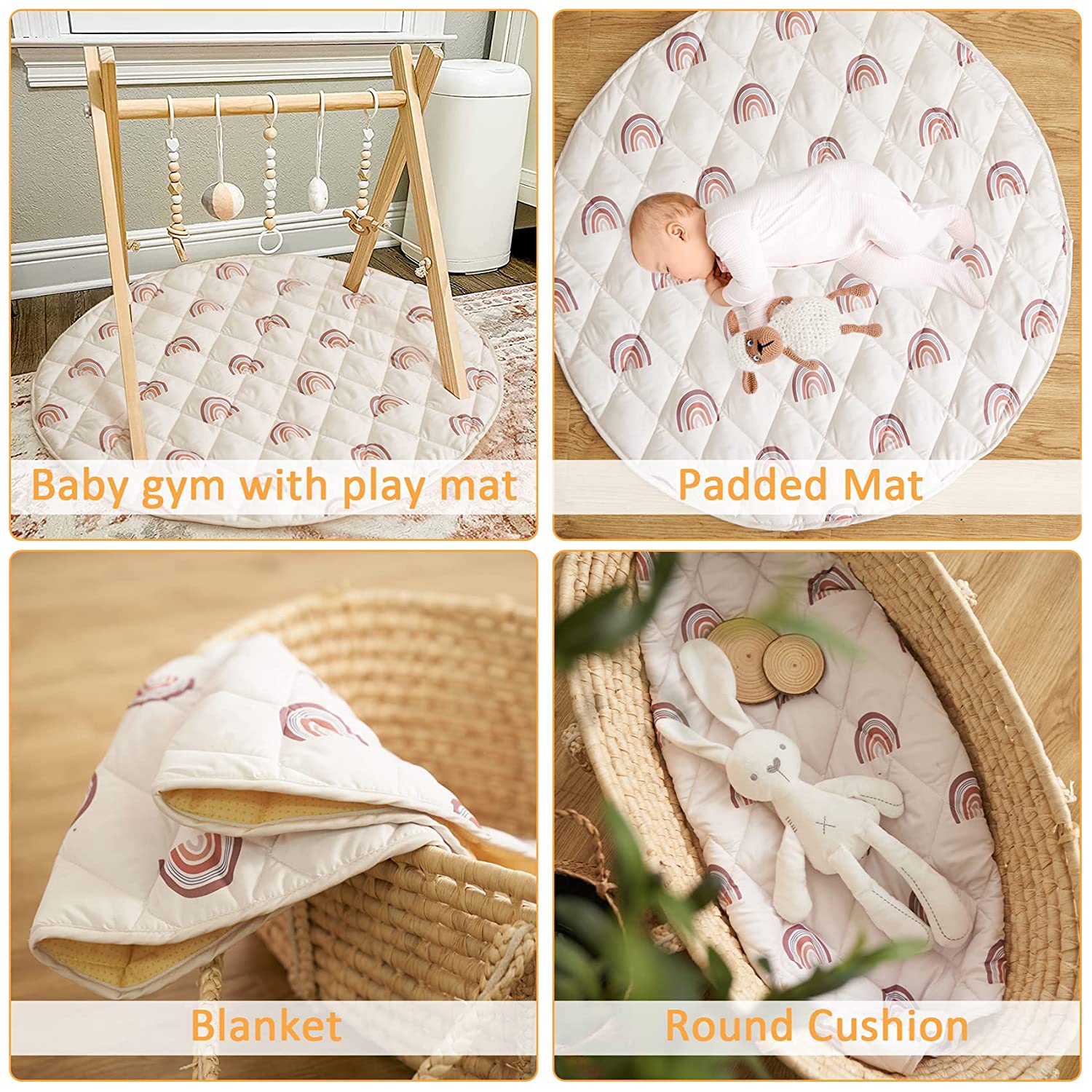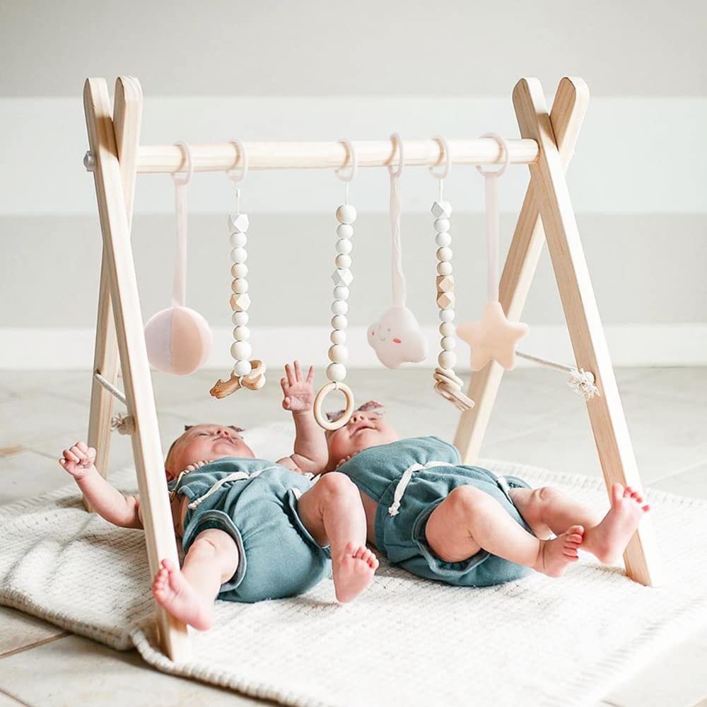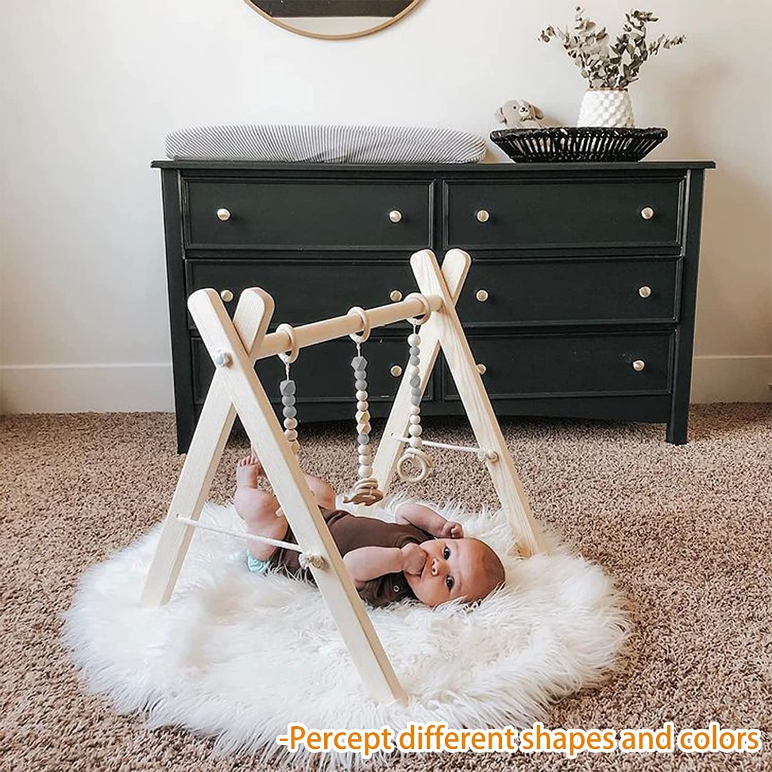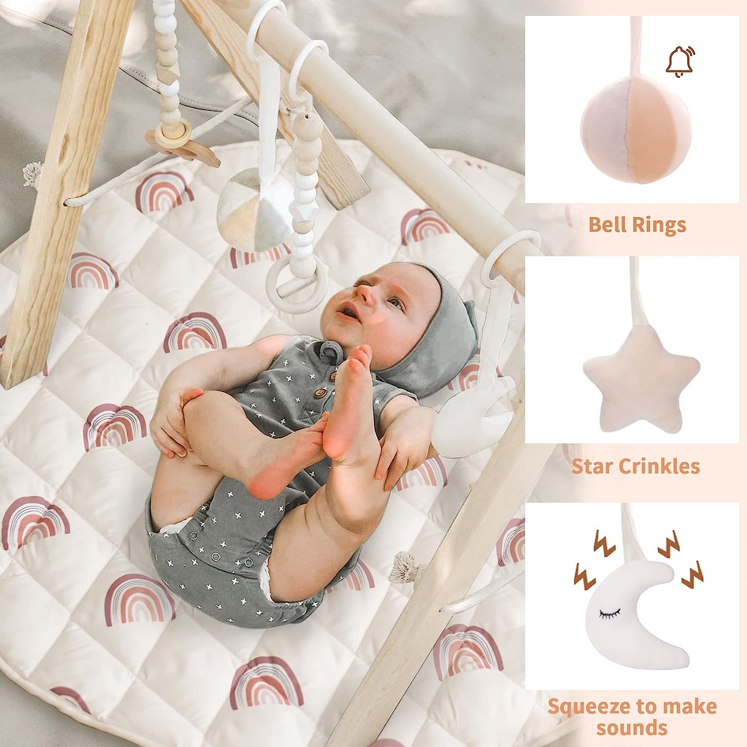 funny supply Wooden Baby Gym with 6 Gym Toys Foldable Baby Play Gym Frame Activity Center Hanging Bar Newborn Gift