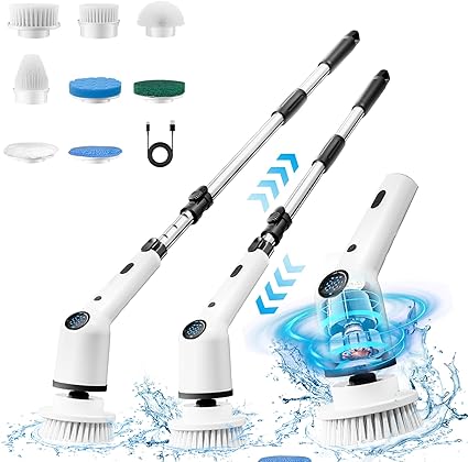 Electric Spin Scrubber for Cleaning Bathroom Kitchen Cordless Cleaning Brush with 8 Replacement Heads Bathroom Shower Cleaner for Bathroom, Kitchen, Bathtub