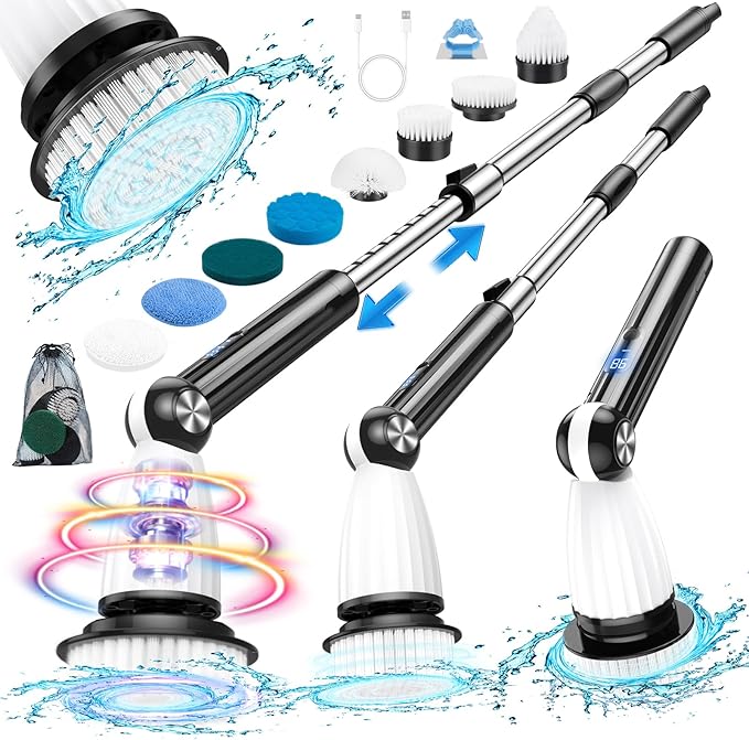 Electric Spin Scrubber, Power Shower Floor Scrubber, Electric Scrubber for Cleaning, Spin Scrub Shower Cleaner Brush, Cleaning Tools for Bathroom, Tub, Floor, Kitchen