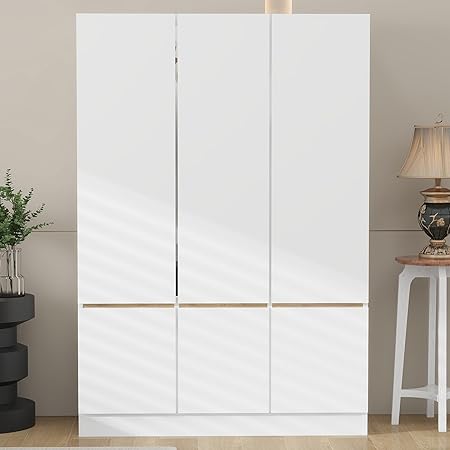 Merax 6-Doors Wooden Wardrobe Closet Storage Shelves and Hanging Rail for Clothes for Bedroom Organizer, White
