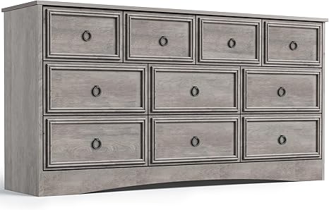 Modern 10 Drawer Dresser, Dressers for Bedroom, Chest of Drawers Closet Organizers and Storage Clothes - Easy Pulls Handle, Textured Borders Living Room, Hallway, Gray