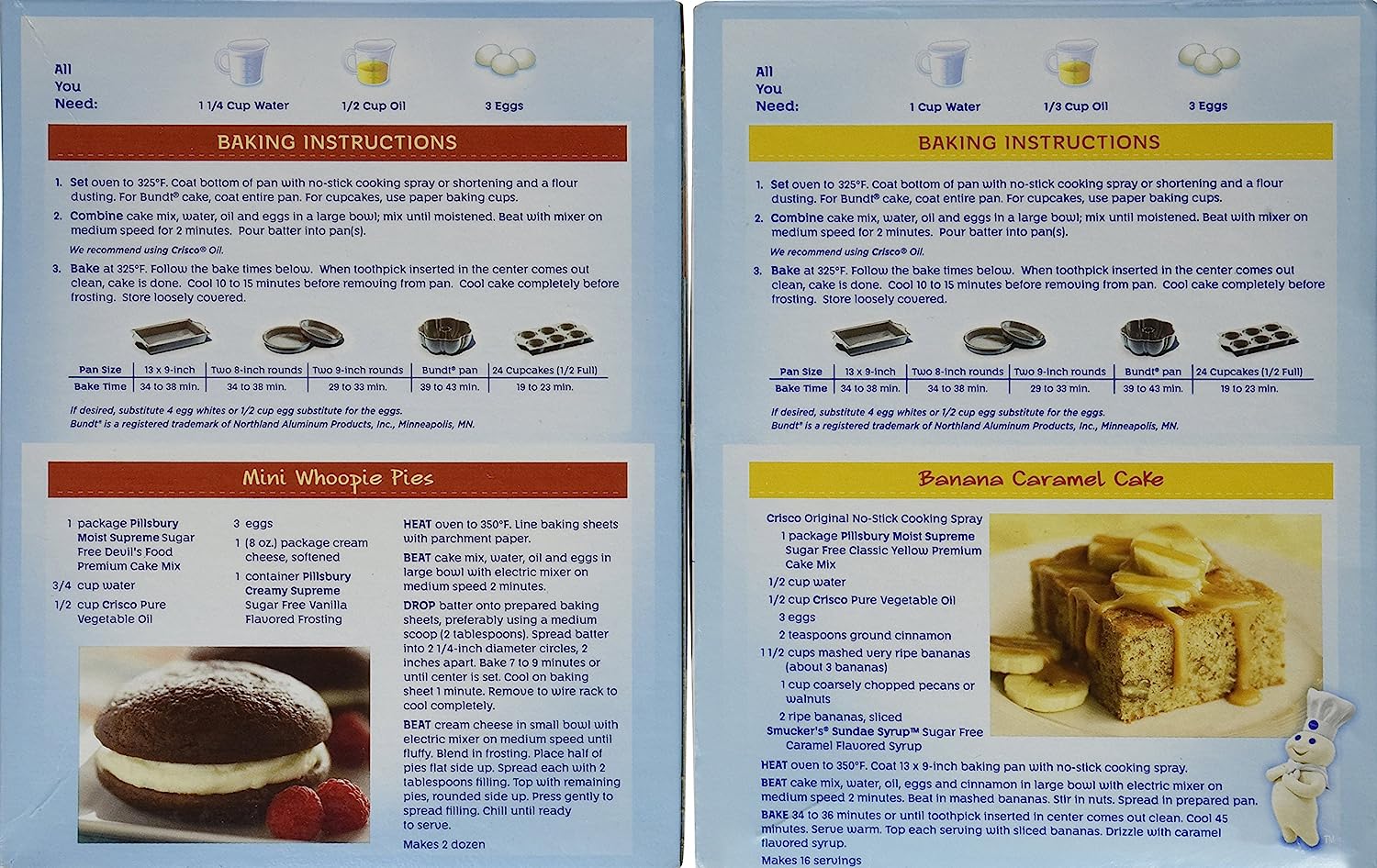 Enjoy classic Pillsbury cake mix without the sugar. Made with Splenda. 1 box each of Devil's Food and Classic Yellow.