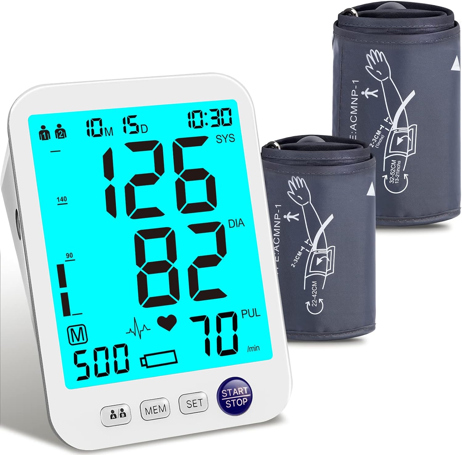 Blood Pressure Monitor Upper Arm Large LED Backlit Screen 1000 Sets Memory Automatic Digital BP Machine Adjustable BP Cuff