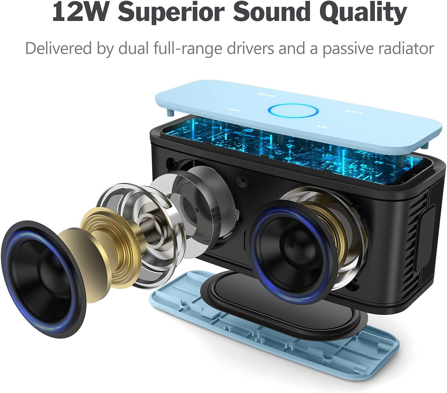 DOSS Bluetooth Speaker, SoundBox Touch Portable Wireless Speaker with 12W HD Sound and Bass, IPX5 Water-Resistant, 20H Playtime, Touch Control, Handsfree, Speaker for Home, Outdoor, Travel-Black