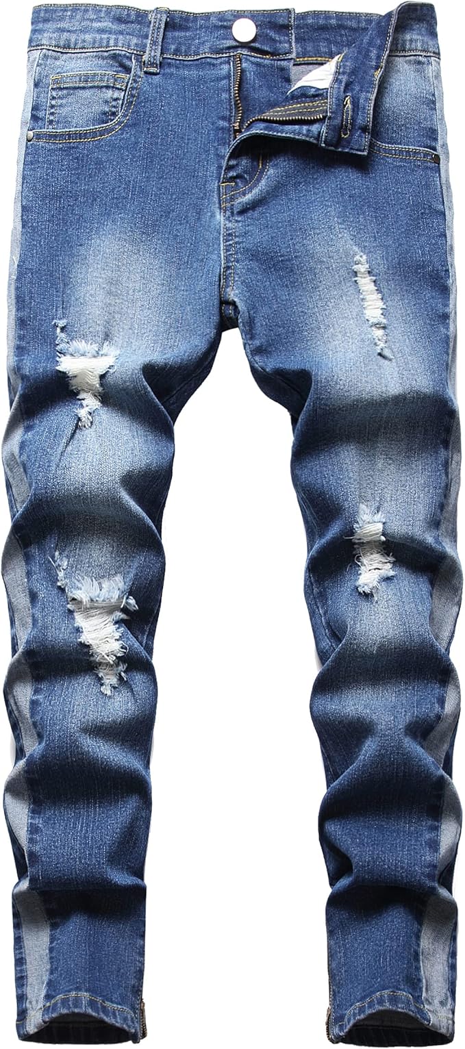 Boy's Moto Skinny Fit Ripped Distressed Stretch Fashion Denim Jeans Pants