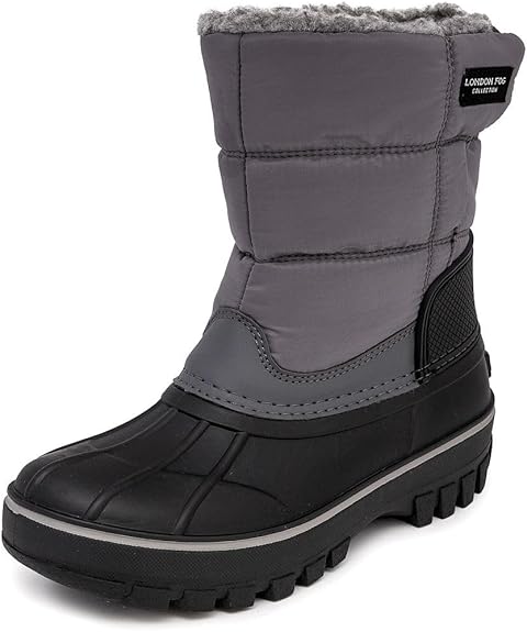 LONDON FOG Jett Waterproof Unisex Kids Snow Boot, Insulated Fleece Lined, Size 5 Toddler to 6 Big Kid, Black, Navy Blue, Grey