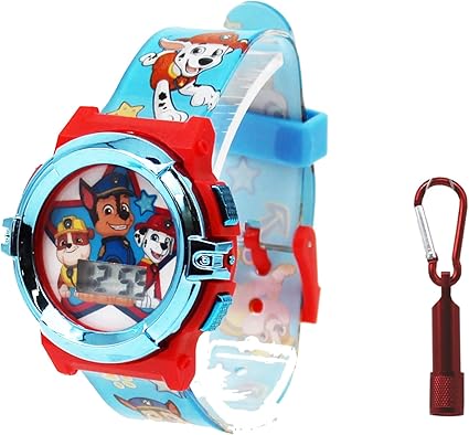 Accutime Kids Nickelodeon Paw Patrol Red & Blue Digital Flashing LCD Quartz Wrist Watch with Flashlight Accessory, Graphic Character Strap for Boys, Girls, Kids (Model: PAW40070AZ)