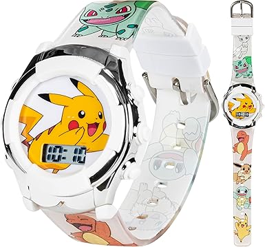 Accutime Kids Pokemon Pikachu Digital LCD Quartz White Wrist Watch with White Strap, Cool Inexpensive Gift & Party Favor for Boys, Girls, Adults All Ages (Model: POK4240AZ)