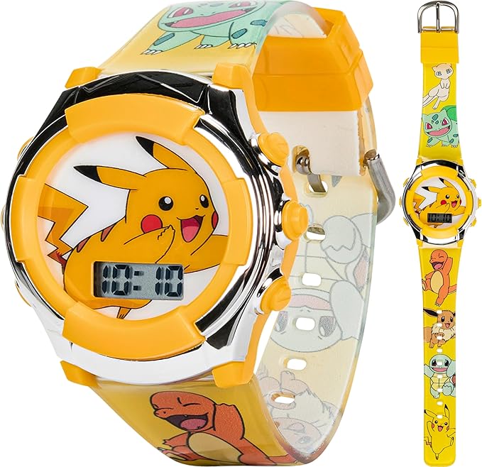 Accutime Kids Pokemon Pikachu Digital LCD Quartz Yellow Wrist Watch with Yellow Strap, Cool Inexpensive Gift & Party Favor for Boys, Girls, Adults All Ages (Model: POK4239AZ)