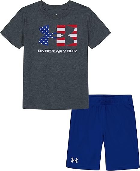 Under Armour Boys Outdoor Set, Cohesive Pants & Top Tshirt And Short Set, Pitch Gray Icon Flag, 4 US