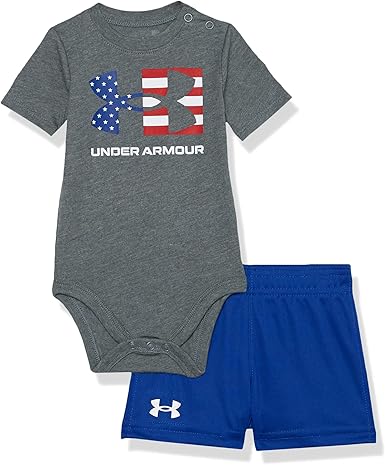 Under Armour Boys Outdoor Set, Cohesive Pants & Top Tshirt And Short Set, Pitch Gray Icon Flag, 7 US