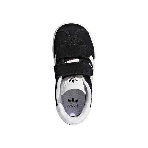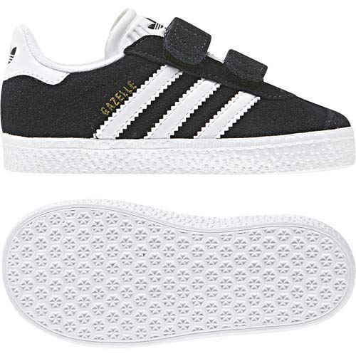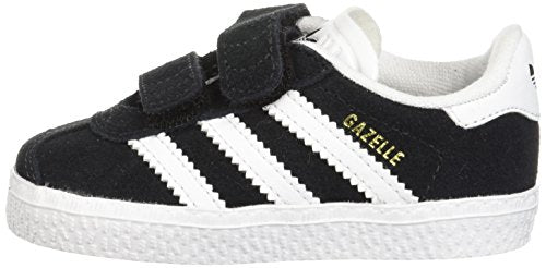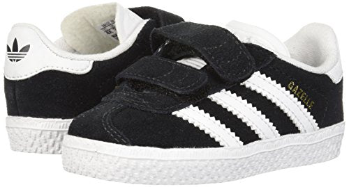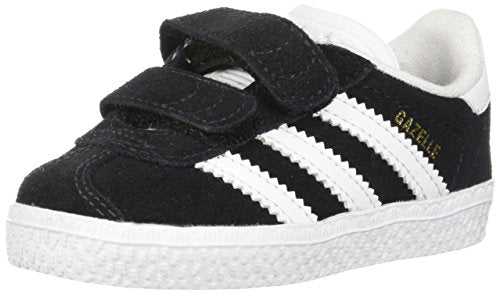 Details: The original Gazelle made in the '60s for soccer's quick stop-and-start moves became a wildly popular streetwear style icon. These toddlers' shoes are designed for speedy transitions with straps for fuss-free on and off. Made from suede and adorned with a metallic gold "Gazelle" atop the 3-Stripes.