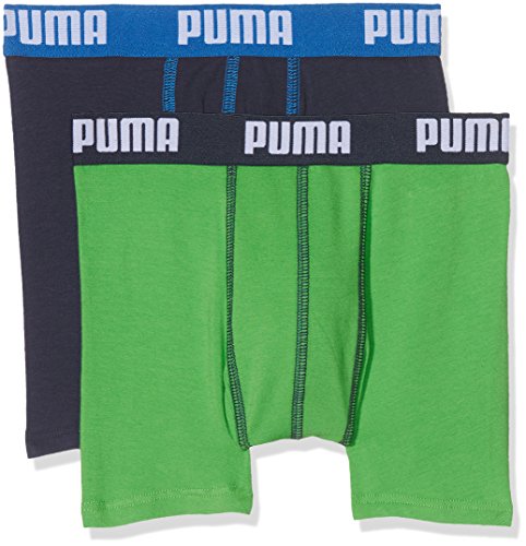 Details: Boys Puma 2 Pack Boxer Shorts. Style: 525015001. Colours: Aqua/Blue, Red/Blue, India Ink/Turquoise, Blue/Grey, Green/Blue. Material: 95% cotton, 5% elastane. Sizes: Age 7-8 (117-128cm), Age 9-10 (129-140cm),Age 11-12 (141-152cm),Age 13-14 (153-164cm),Age 15-16 (165-178cm). Luxurious cotton with elastane for comfort and fit. Ergonomically designed with double layer pouch. Tactical panelling, stitching and wider comfort waistband with Puma logo.