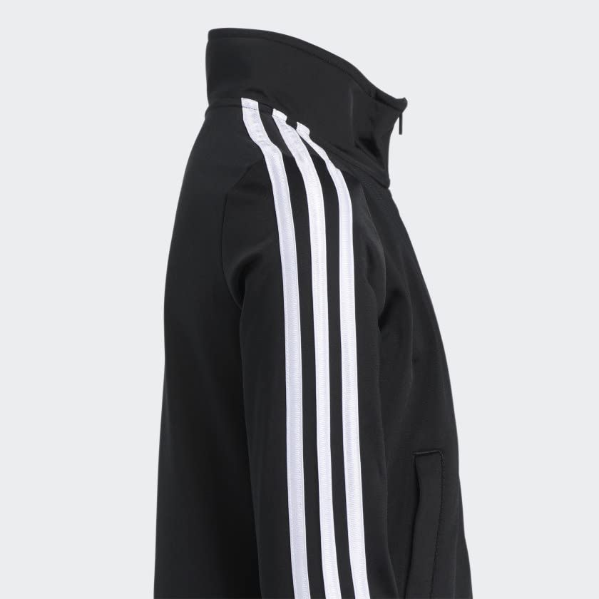 Details: The full-zip icon tricot jacket features applied stripes that run down sleeve. Welt pockets, rib sleeve cuff and rib hem. Embroidered Adidas brand mark on wearer's left chest.