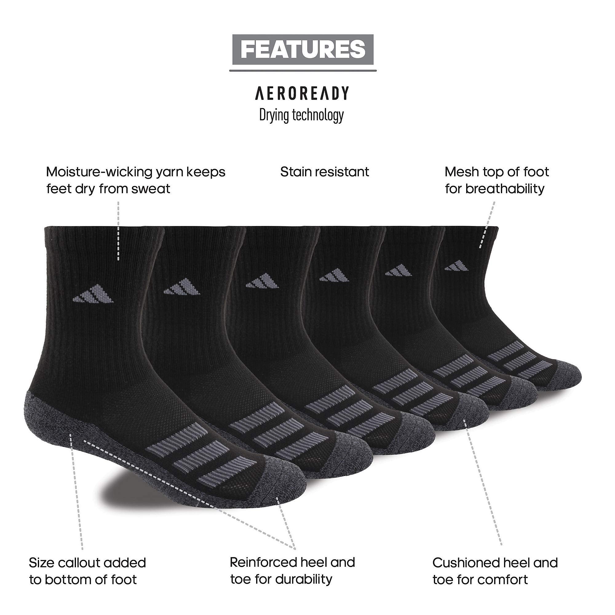 Details: Made for sporty kids, these athletic socks with cushioning in the heel and toe keep them comfortable at school or on the field. soft, stretchy yarn wicks moisture away to keep their feet dry. the socks come in a pack of six.
