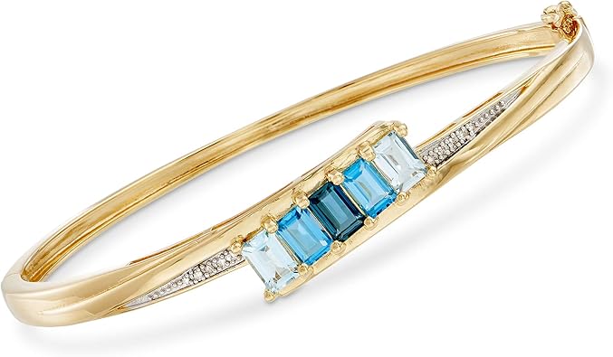 Ross-Simons 3.10 ct. t.w. Tonal Blue Topaz Bangle Bracelet With Diamond Accents in 18kt Gold Over Sterling