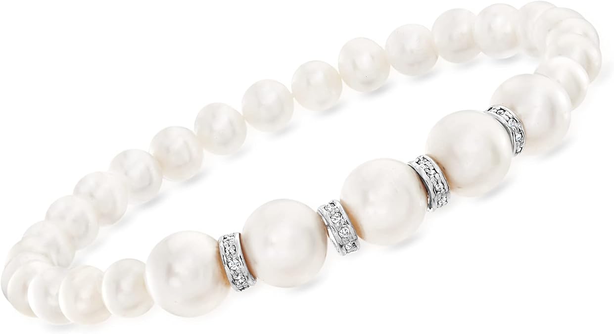 Ross-Simons 6-8.5mm Cultured Pearl and .25 ct. t.w. Diamond Stretch Bracelet With Sterling Silver. 7 inches