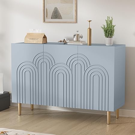 ARTPOWER 47" Sideboard Buffet Cabinet with Cloud Relief, Accent Cabinet with 3 Doors, Modern Buffet Cabinet, Credenza Storage Cabinet for Living Room, Kitchen, Dining Room, Hallway, Entryway, Blue