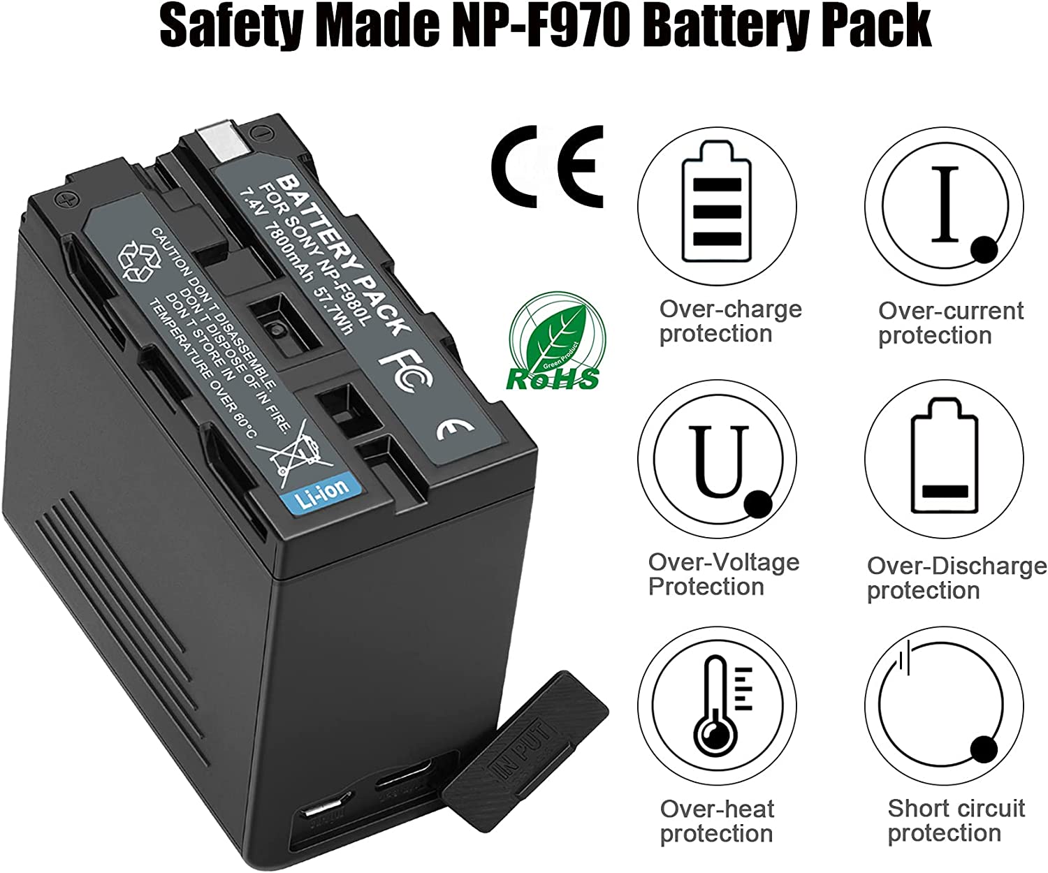 • 📷NP-F970 Battery Replacement: Li-ion rechargeable NP-F970 battery fit for all devices that takes Sony NP-F mount batteries, F970 replace battery pack for Sony NP-F970 NP-F960 NP-F975 NP-F950 NP-F930 NP-F330 NP-F550 NP-F570 NP-F750 NP-F770, Sony Handycams and LED Video Light , Field Monitor which are using F970/F550 battery.