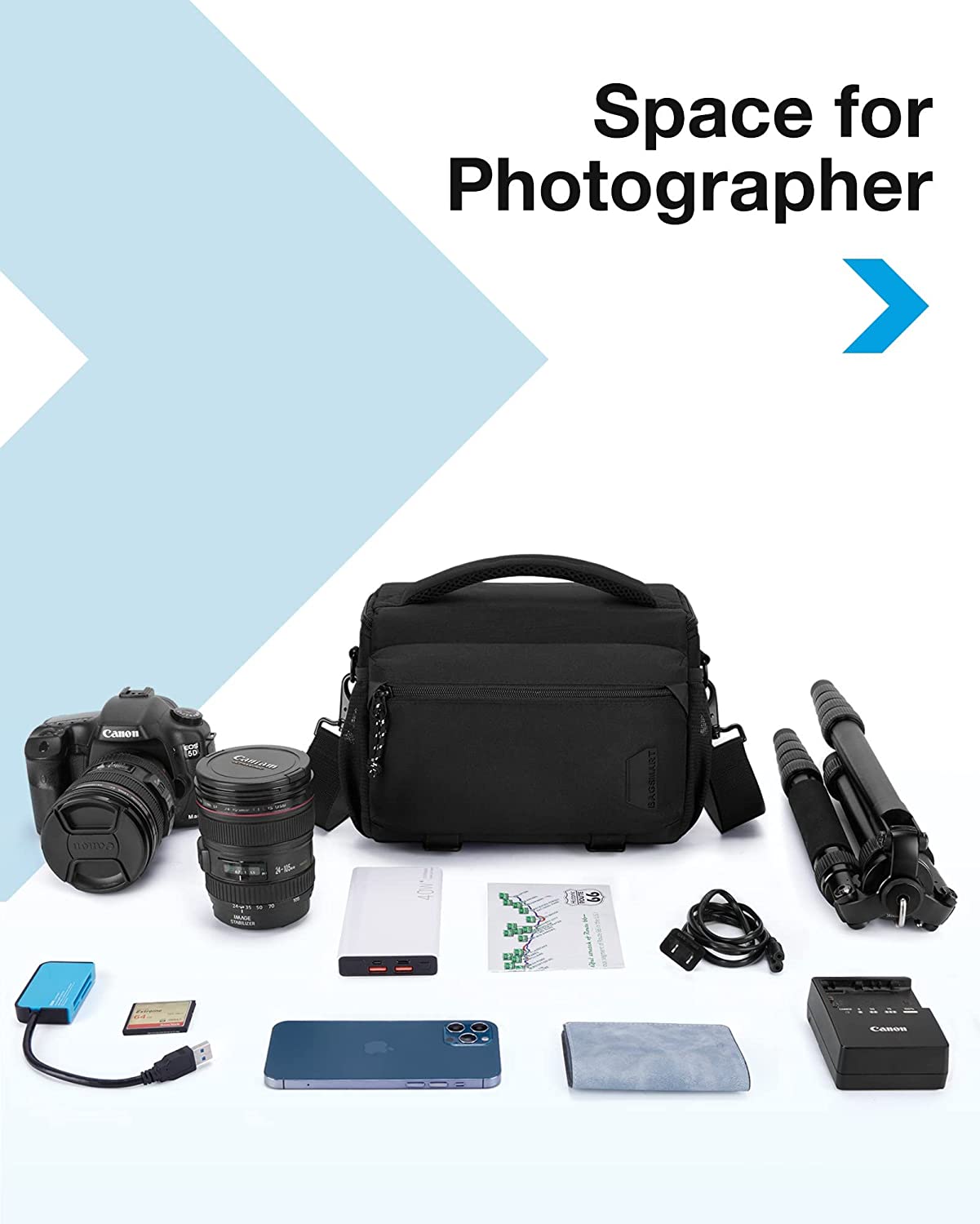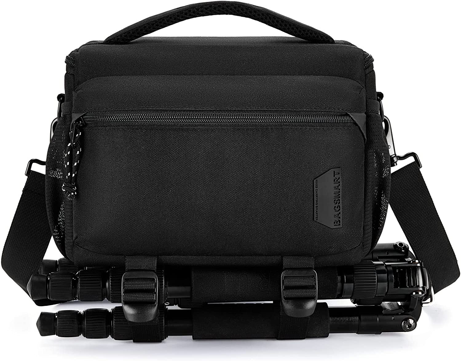BAGSMART Camera Bag, Small Camera Case with Tripod Holder, Compact Camera Shoulder Bags for DSLR/SLR/Mirrorless Cameras, Waterproof Crossbody Camera Bag Women Men, Black