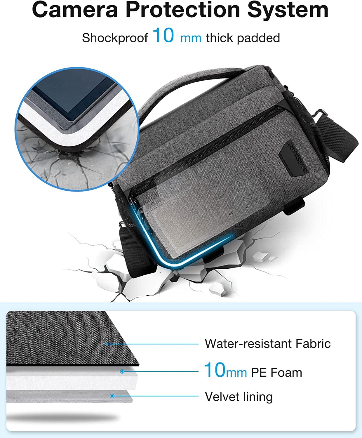 • USER FRIENDLY: Travel and transport your gear in style. It is a compact camera bag that offers a convenient hands-free way to carry your camera and essentials that is ideal for travelling and commuting. An ideal christmas gifts for men women.