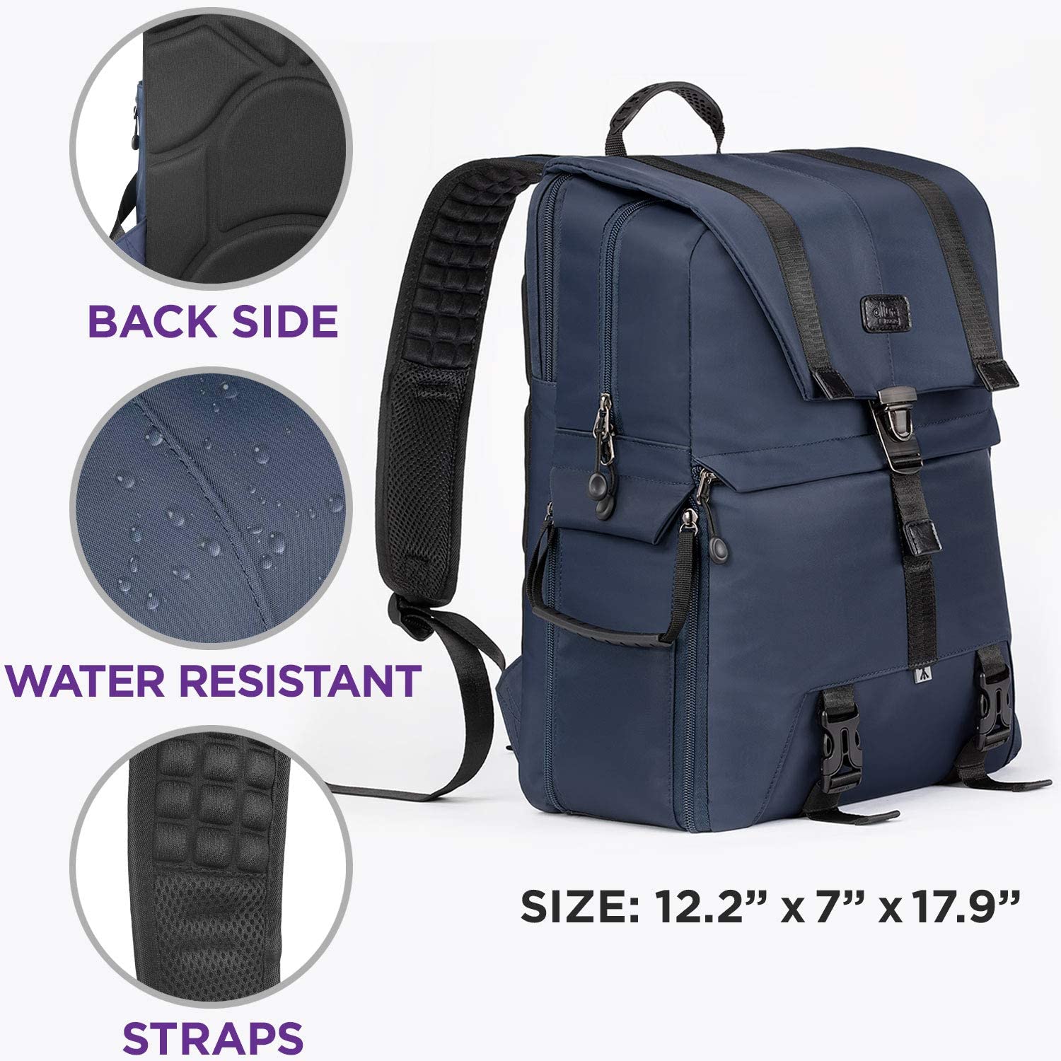 • LIGHTWEIGHT AND COMPACT camera bags for dslr cameras, water resistant photography bag with high quality, durable, nylon exterior and non-slip bottom that wipes clean. In dark blue with black trim.