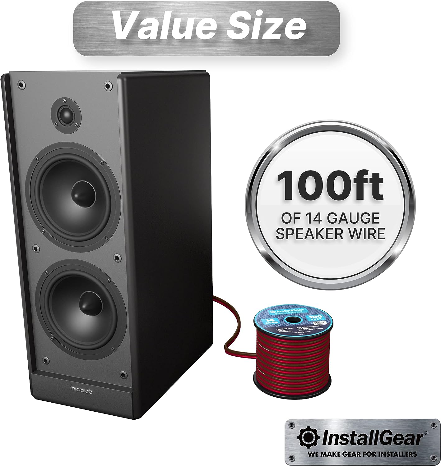 InstallGear 14 Gauge Speaker Wire Cable (30 Foot) - 14 AWG True Spec and Soft Touch Cable - Red/Black (Great Use for Car Speakers Stereos, Home Theater Speakers, Surround Sound, Radio)