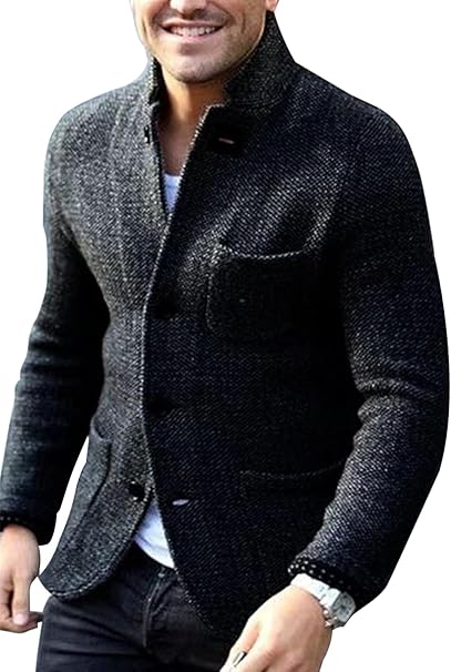 yoeasy Men's Blazer Collar Long Sleeve Button Knit Cardigan Casual Open Front Sweater with Pockets