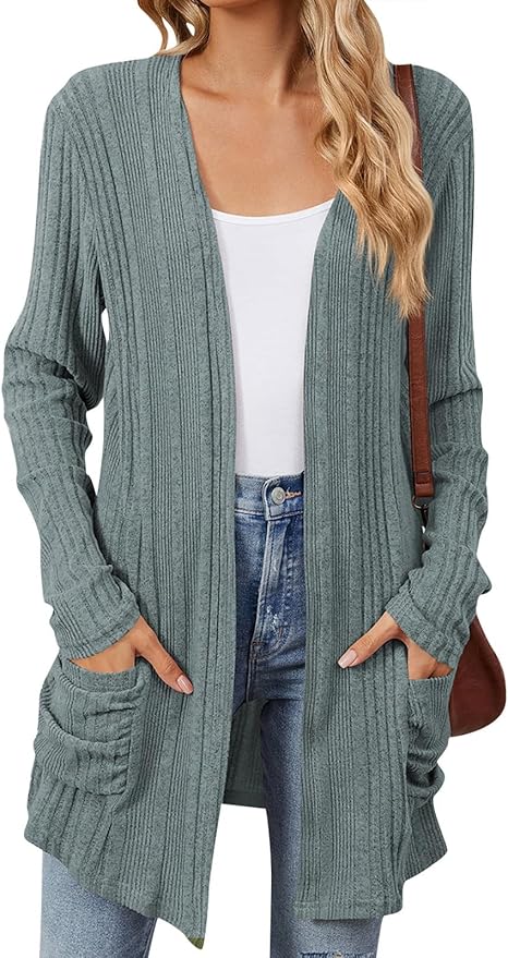 Cardigan Sweaters for Women Light Jackets Trendy Open Front Cardigans Fall Tops Long Sleeve Cardigan with Pockets