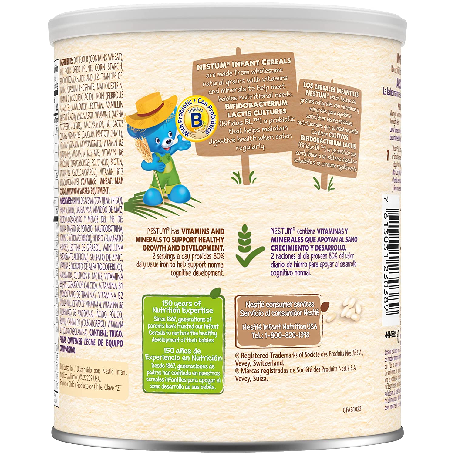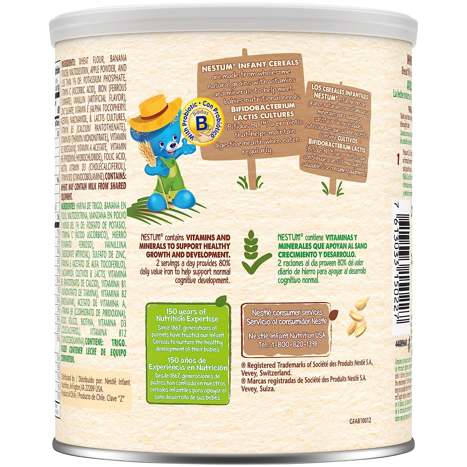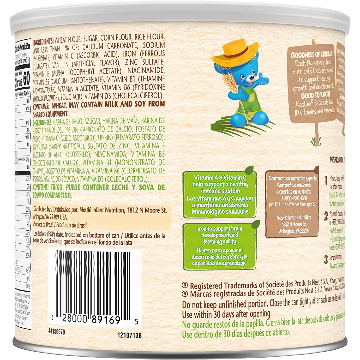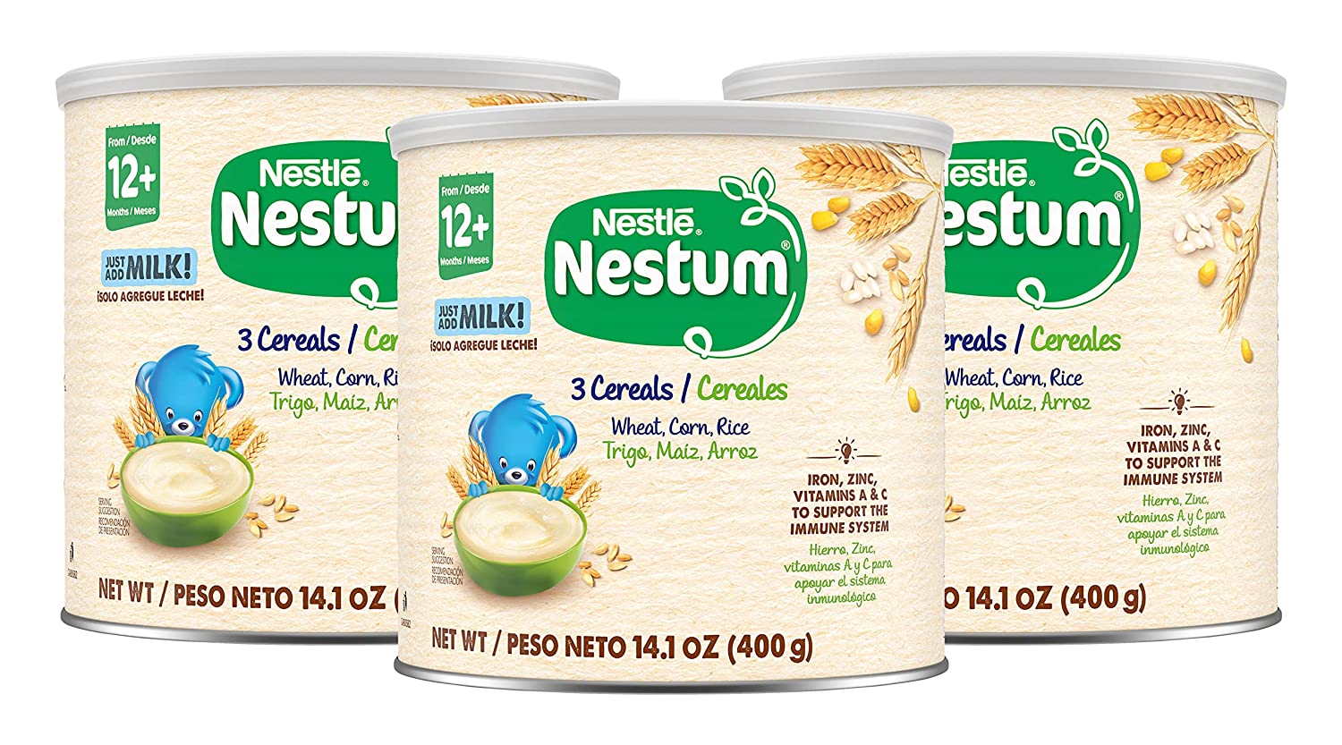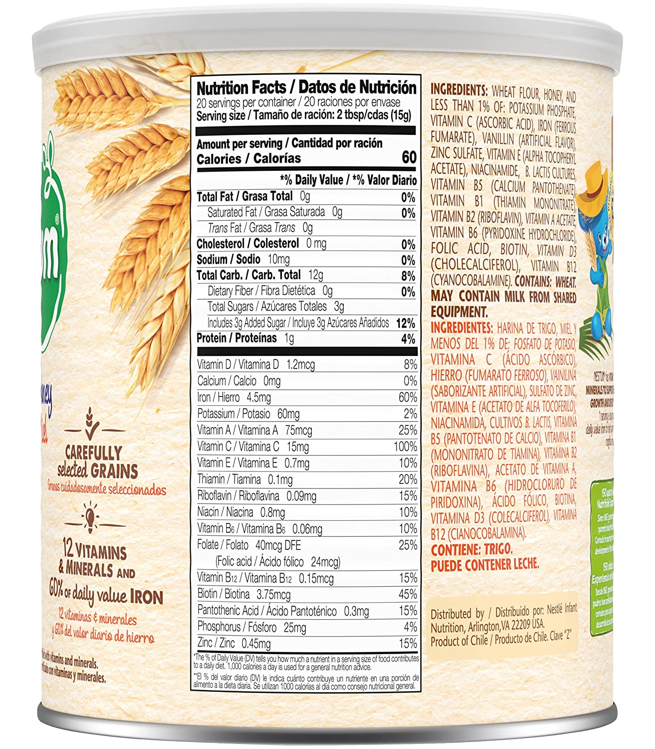 Nestle Nestum Infant Cereal, Wheat & Honey, 10.6 Ounce Canister: Crafted with delicious ingredients to help your little one blossom. This Nestum cereal contains carefully selected grains with 12 vitamins and minerals and 60% daily value of Iron. Great to help support healthy development for your baby. Nestum is made with wholesome grains and vitamins and minerals to support healthy growth, including iron to help support brain development and learning ability. Our cereals are made with wholesome ingredients. Also, they are easy to prepare for a satisfying cereal for your little one. With a range of cereals made for little ones from 6-12+ months, there’s a Nestum product to help nourish little tummies of all ages. This Nestum cereal is made for babies 12+ months.