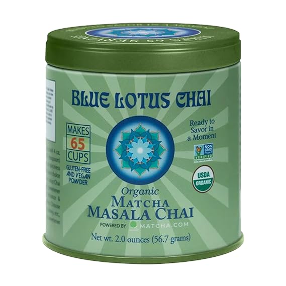 Blue Lotus Chai _ÑÐ Organic Matcha Masala Chai - Makes 65 Cups _ÑÐ Just Add Hot Water, No Steeping, No Gluten - 2 Ounce Masala Chai Powder with Ceremonial-Grade Matcha and Organic Spices