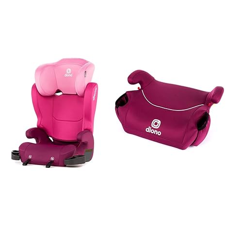Diono Cambria 2 XL Pink Booster Seat Bundle with Solana Pink Backless Booster, 2-in-1 Belt Positioning
