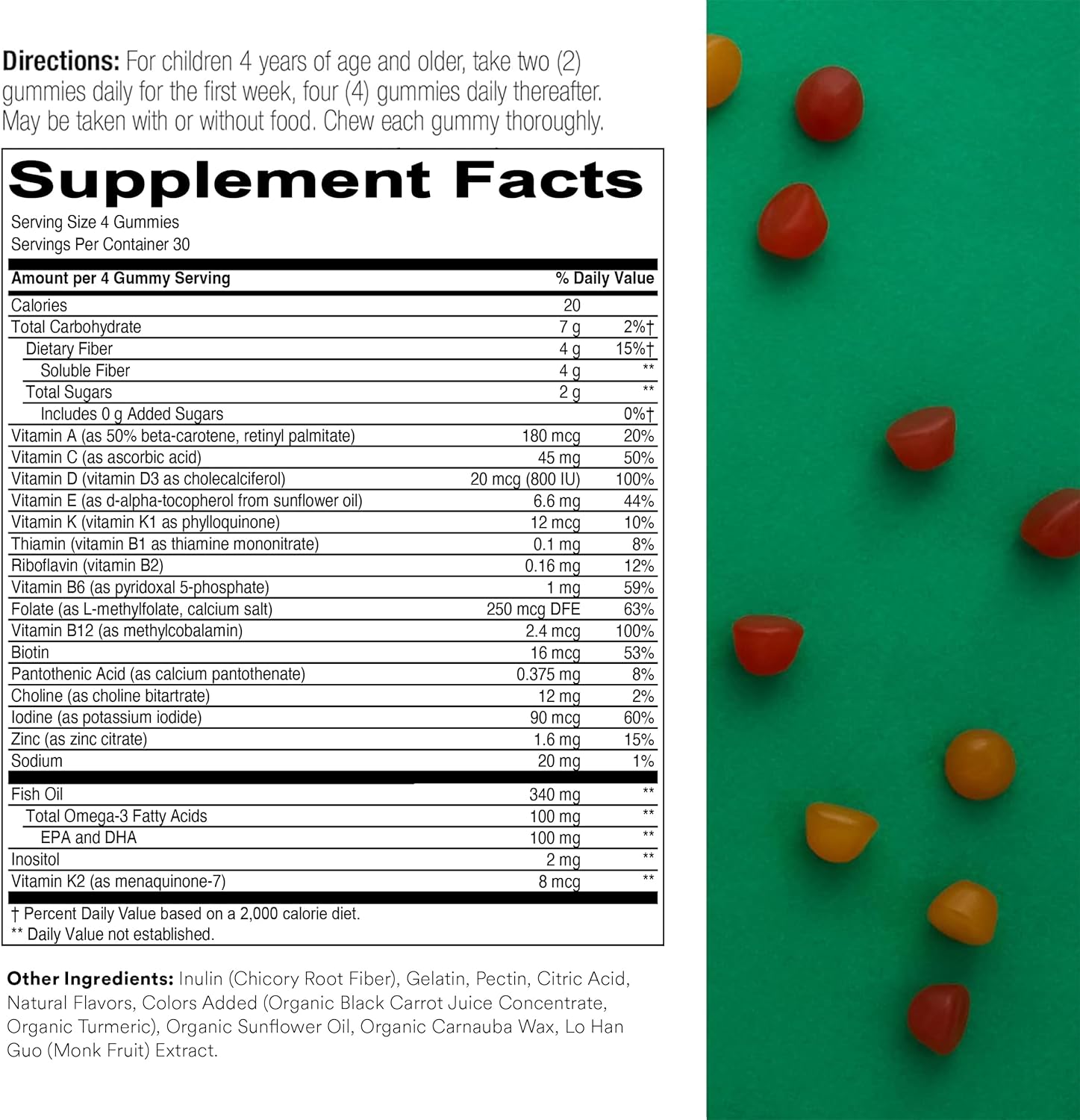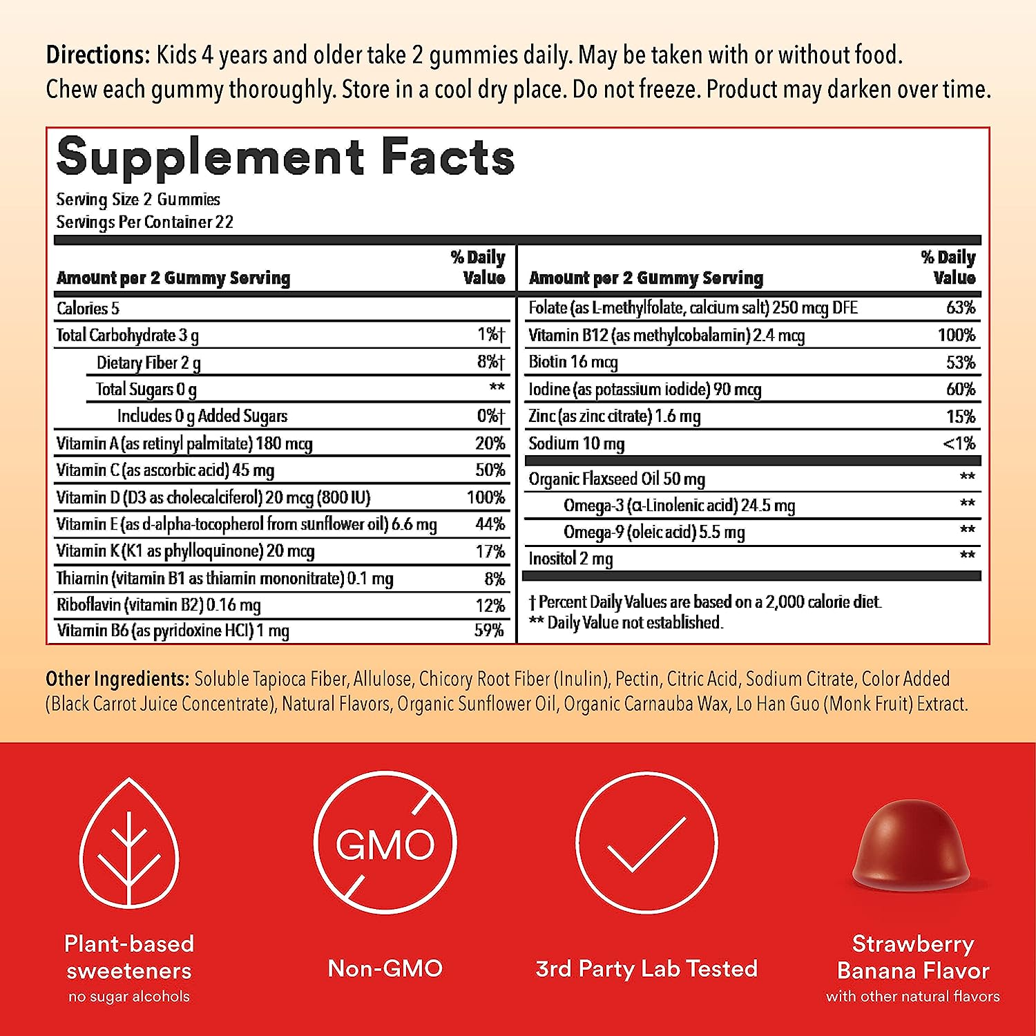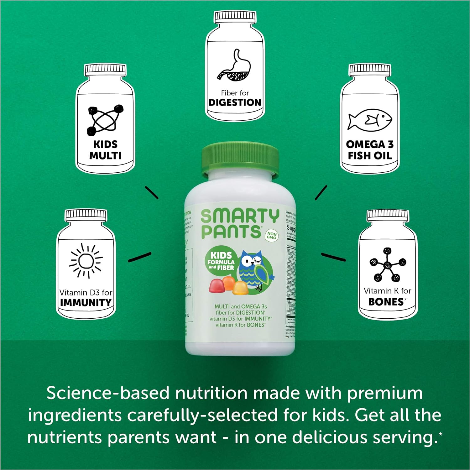 SmartyPants Kids Formula is a multifunctional gummy multivitamin that contains more of the nutrients parents want in a delicious format that kids love! Each serving delivers a robust blend of vitamins and nutrients including omega-3 EPA and DHA essential fatty acids (from fish oil), vitamin D in the premium form D3 for bone health, vitamin B12 to support energy metabolism, folate in the premium form methylfolate to help form red blood cells, iodine for thyroid support and the antioxidant vitamin E for the maintenance of good health all in one easy (and delicious) serving.* We use nutrient forms that your child's body can easily use to help to fill nutritional gaps and support overall good health, without any of the icky stuff. Our gummy multivitamins are non-GMO and made without any synthetic colors, artificial flavors or sweeteners.