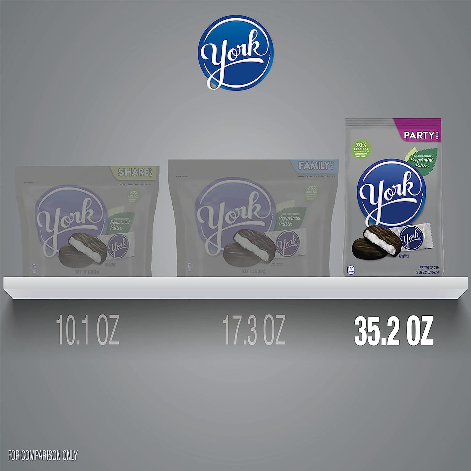 Chill out with YORK dark chocolate covered peppermint patties candy with 70 percent less fat than other leading chocolate candy brands! These small but mighty candies invigorate your taste buds with a minty kick, combined with rich dark chocolate to keep you feeling excited for a full day ahead. Bring a bag into work so that everyone can have a piece. This bag is perfect for any special occasion like movie marathons, birthday parties, work celebrations and family get-togethers. Everyone can reach in and grab YORK peppermint patties treats of their own with this party pack. These dark chocolate peppermint treats are also fun to bake with! Wrap your favorite cookie dough around the chocolate peppermint candy, bake in the oven, then experience a minty fresh cookie created by yours truly. You can also hand out scrumptious YORK dark chocolate peppermint patties candies during the holidays. Pack Easter eggs and baskets, stuff Christmas stockings, fill Halloween candy bowls and Valentine's Day gift bags with a minty-fresh treat everyone is sure to love. Even better, these minty delights covered in dark chocolate are gluten free and kosher-certified, making them perfect for sharing with those who love a refreshing but rich snack.