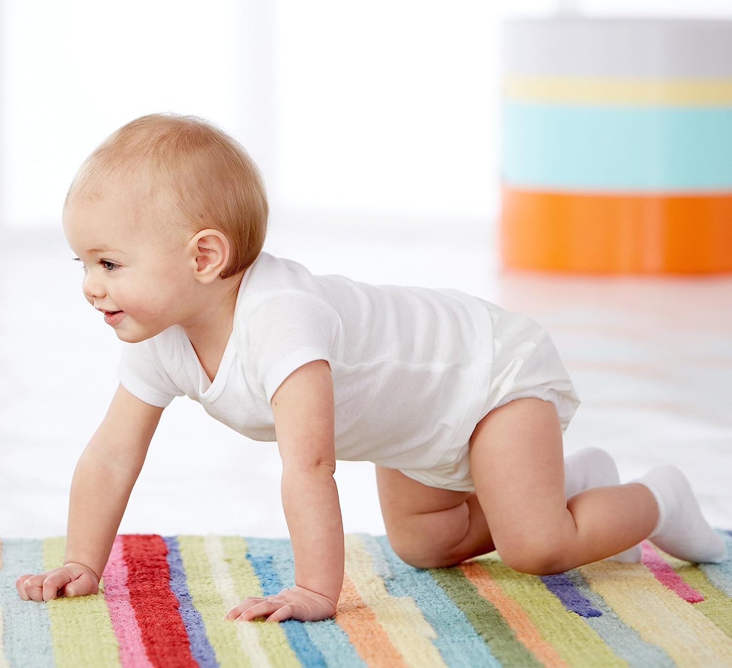 Gerber 2 pack waterproof pants are ideal for multiple uses: as a protector over cloth diapers, extra protection over a swim diaper and for use over toddler training pants for when they first start potty training. The gentle elastic waistband makes them comfortable, and easy to pull up or down. Durable, easy to use, easy to wipe clean. Available in sizes 0-3, 3-6, 6-9, 12 Months, 18 Months and 2T. Gerber Childrenswear LLC is a leading marketer of infant and toddler apparel and related products in the marketplace - offering all of the everyday, core layette apparel including Onesies Brand one piece underwear, sleepwear and accessories that mom needs for baby’s first years. We are the original maker and owner of the Onesies Brand trademark* which has been a staple product in babies wardrobes throughout the U.S. for over 30 years.