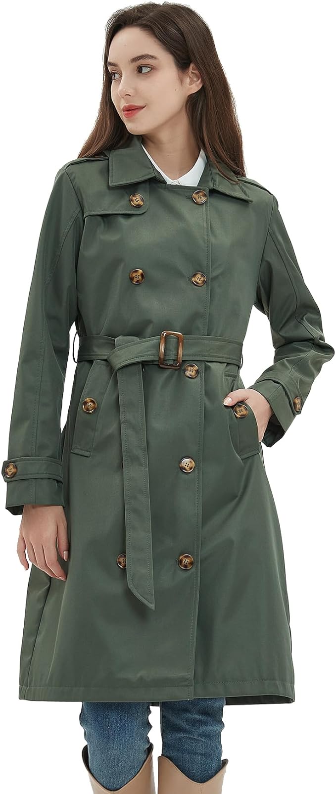 Womens Trench Coat Double-Breasted Long windbreak Belted Slim Outerwear Coat with Detachable Hood S-2XL