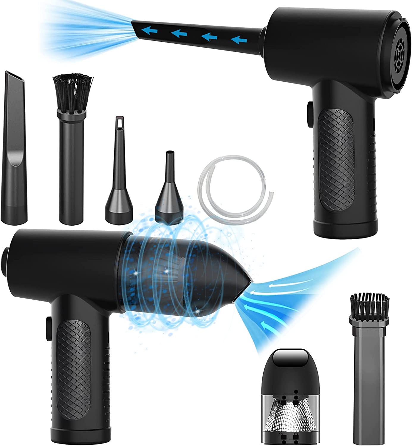 • 2 in 1 Air Duster and Mini Vacuum: Combining air dusting and mini hand-held vacuum in one device no longer blows dust everywhere. Use the vacuuming function when cleaning dust to achieve dust-free cleaning. Practical and economical 2-in-1 electric air duster.