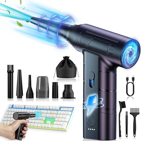 Electric Air Duster - 150000RPM 2-in-1 Compressed Air for PC Keyboard Cleaner, Stepless Speed Blower for Car and Home, Rechargeable Replaces Canned Air
