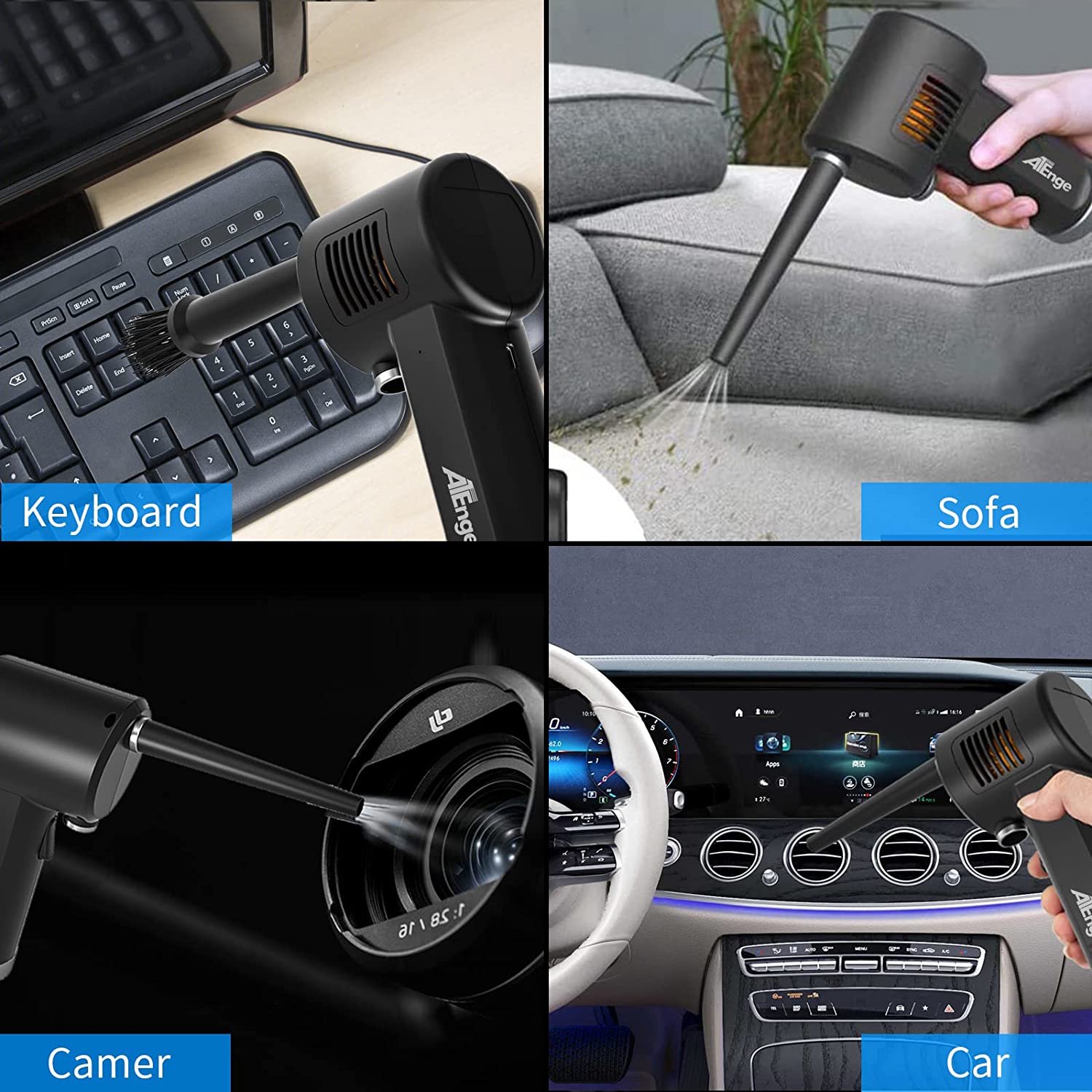 • ⚡【Rechargeable Electric Air Duster】The electric air duster is equipped with fast charging port, can be quickly charged in three hours, which can run continuously for15- 30 minutes. The use time depends on the blowing force. You can charge it through the car charger, mobile power laptop.