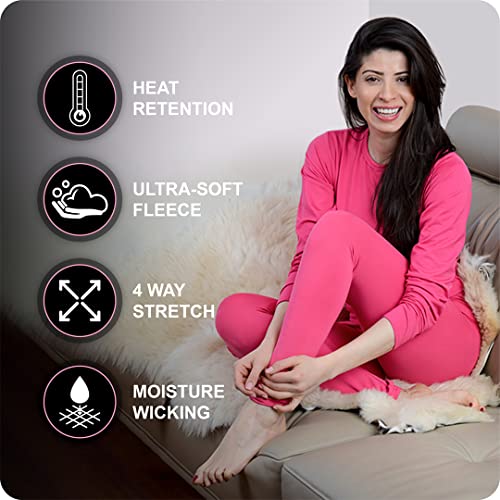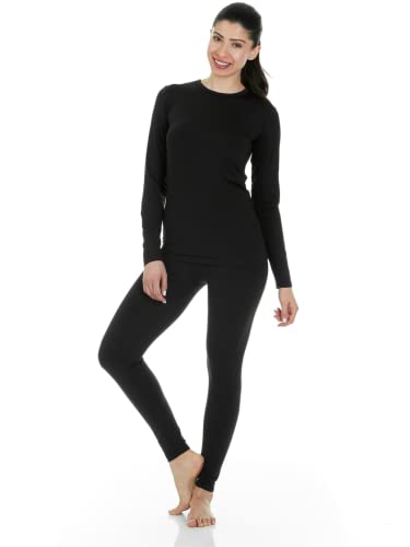 Thermajane Long Johns Thermal Underwear for Women Fleece Lined Base Layer Pajama Set Cold Weather (Medium, Black)
